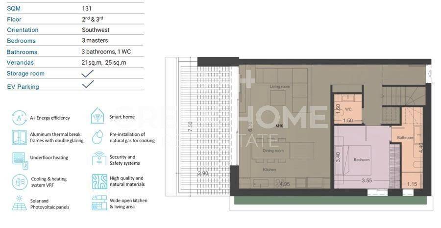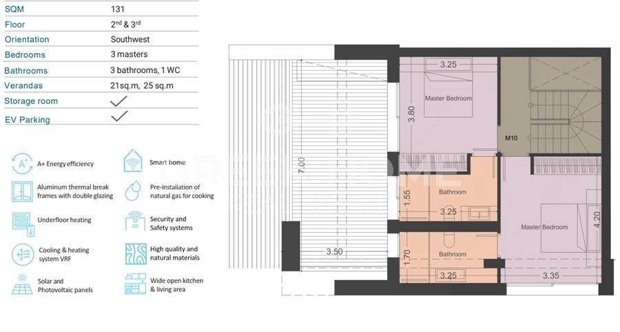 Marousi - Full floor Maisonette 137sqm master bedrooms 3, levels 2, 2nd - 3rd, under construction, energy class A+, living room, kitchen, 3 bathrooms, wc, heating type: autonomous (fan coil), air condition, parking covered, quiet, dual aspect apartment, luminous, unobstructed view view, frontage, painted, electric roller shutters, storage space, solar heater, external thermal insulation, balconies, large balconies, balcony 38sqm, elevator, thermal shut-off frames, double glazed windows, door screen, wood & tile floors, handicap ramp, secure door, alarm, video doorbell, luxurious, ev charger, internet, south-eastern orientation.