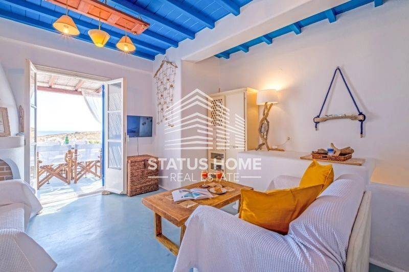 Property Code: 2-1460 - Maisonette FOR SALE in Mykonos Kalafati for € 340.000 . This 60 sq. m. furnished Maisonette is on the Ground floor and features 2 Bedrooms, Livingroom, Kitchen, bathroom and a WC. The property also boasts Heating system: Air conditioner, cement mortar floors, view of the Sea, Window frames: Aluminium, Armourplated door, parking, garden, fireplace, A/C, electrical appliances, insect screens, double-glazed windows, solar-powered water heater, open space, internal staircase. The building was constructed in 2002 Plot area: 90 s.q. . Building Energy Rating: F Distance from sea 400 meters,