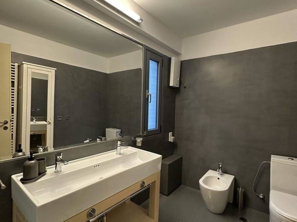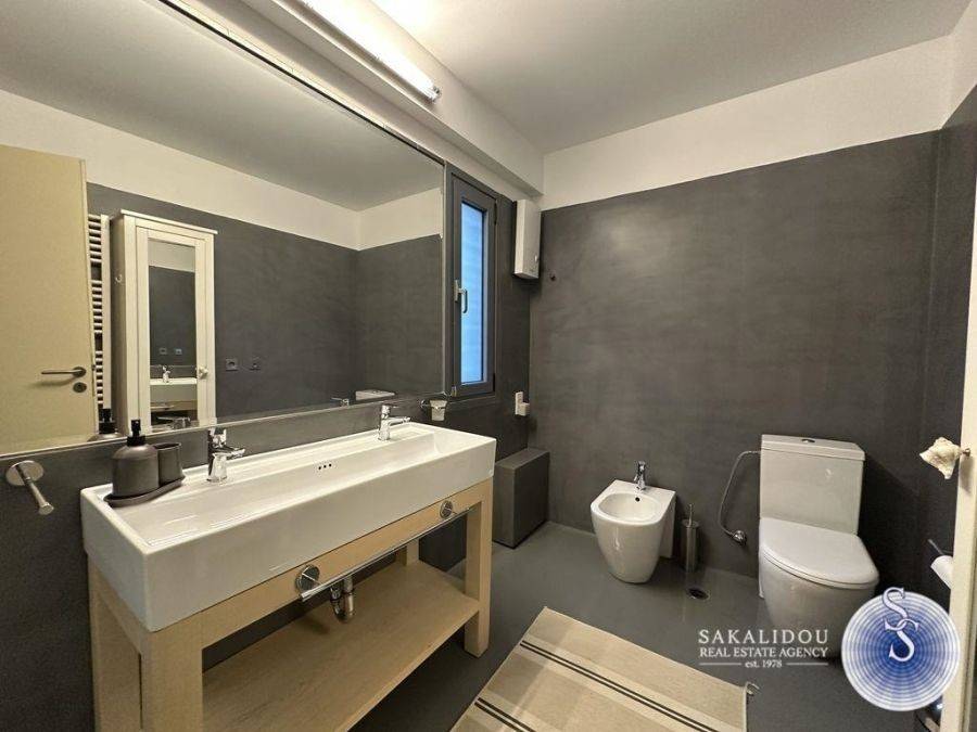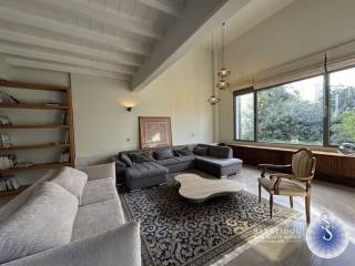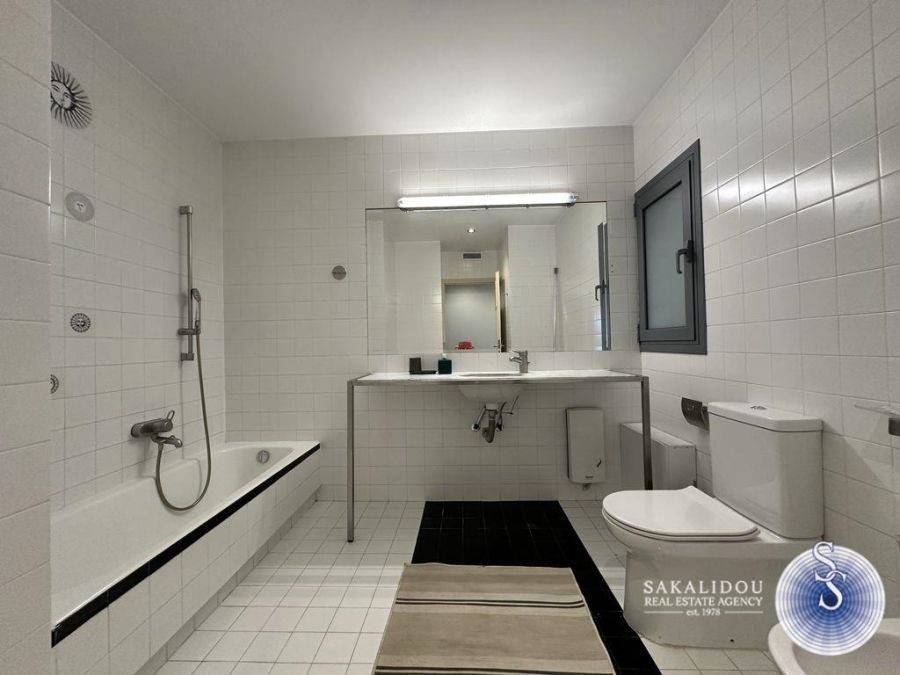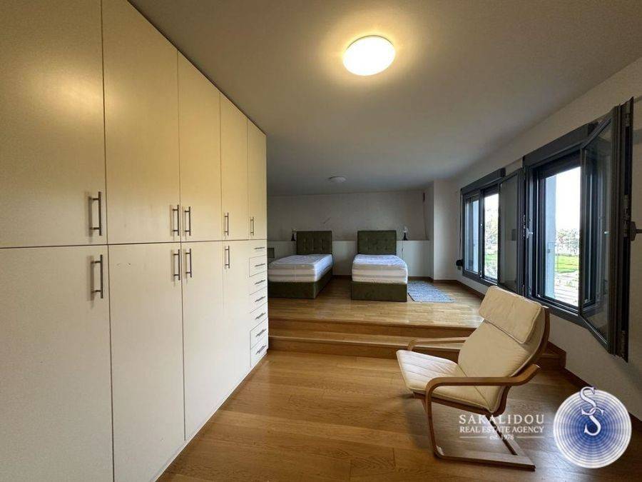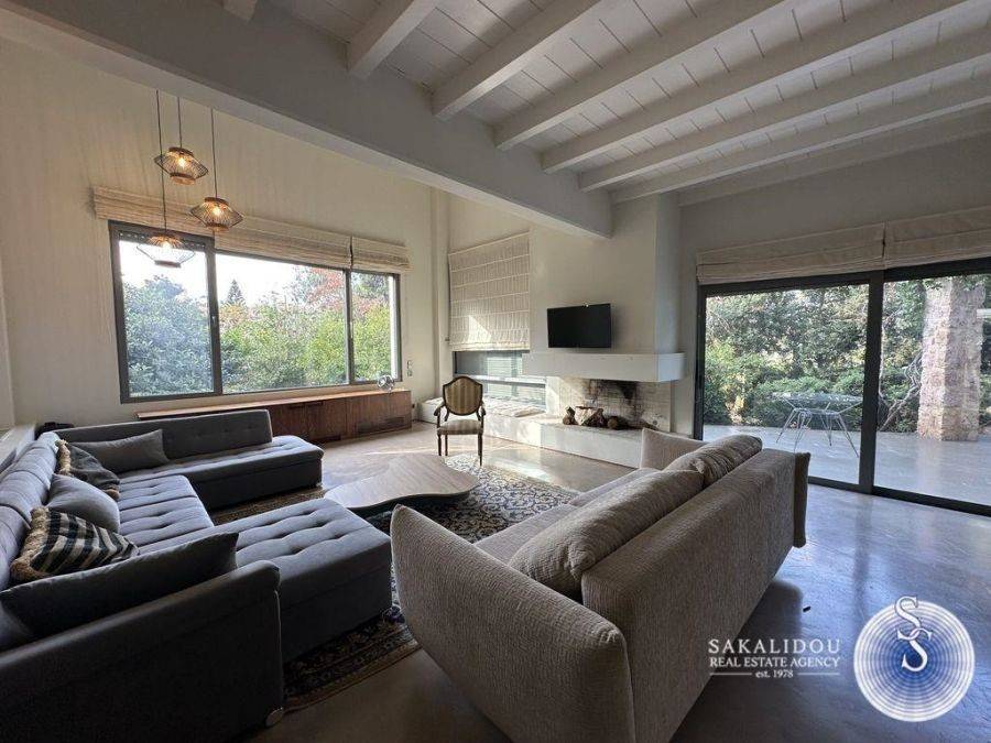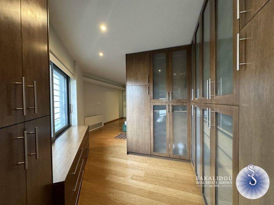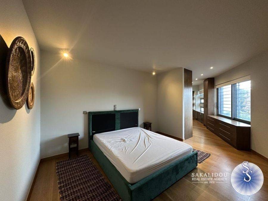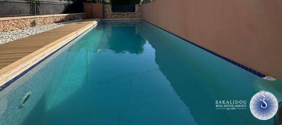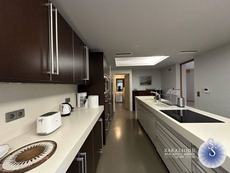 Glyfada, center, in the best area, 200 meters from the sea, ground floor maisonette of 2 levels, luxury and minimal design, from a famous architect, 380 sq.m with amazing garden and big trees. It consist of spacious living area with fireplace, modern kitchen fully equipped with electrical appliances, 4 bedrooms, one is master with walk in closet and en-suite bathroom. It has a central A/C, swimming pool, alarm system, 3 parking spaces, storage room.