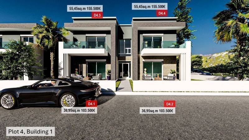 • 11 Ground floor apartments from 36.95sq.m. to 39.55sq.m., consisting of a living room with kitchen, 1 bedroom, 1 bathroom.