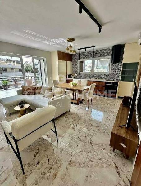 Paleo Faliro, Gipeda - Apartment 90sqm bedrooms 2, 6th, renovated, year built 1973, renovation year 2024, energy class G, living room, kitchen, bathroom, heating type: individual unit (natural gas), air condition, dual aspect apartment, luminous, unobstructed view, frontage, solar heater, external thermal insulation, fireplace, balconies, elevator, built in appliances, aluminum frames, door screen, ceramic tiles floors, secure door.