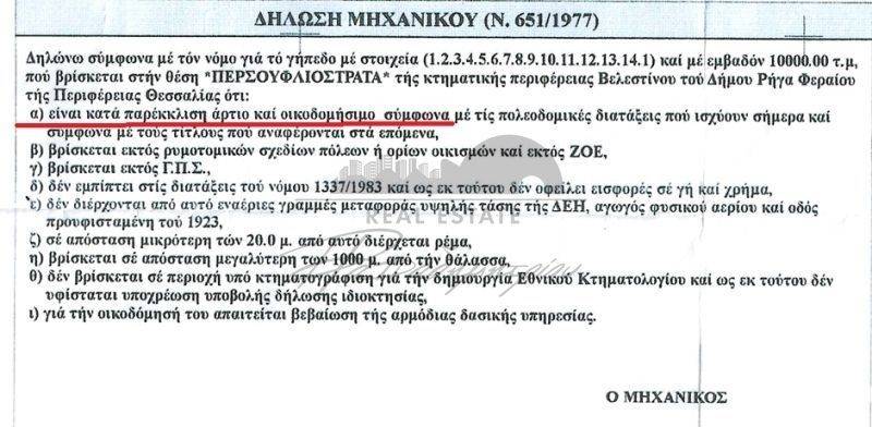 Πανω στην Επαρχιακη οδο Βελεστινου-Αερινου,αγροτεμαχιο 10.000 τ.μ με προσωπο 59,57 μετρα,στην θεση \ΠΕΡΣΟΥΦΛΙΟΣΤΡΑΤΑ\.