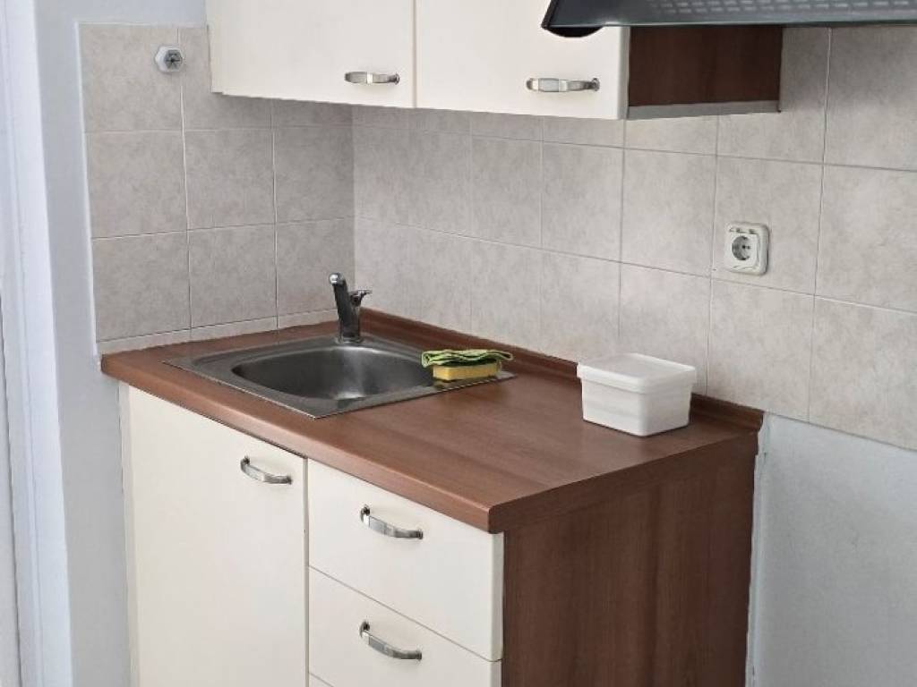 Στούντιο 30τ.μ. Γ' ορόφου. Βρίσκεται στην περιοχή του Αγ. Νικολάου σε μικρή απόσταση από το κέντρο. Αποτελείται από ένα δωμάτιο και κουζίνα που χωρίζονται με χαμηλό πάσο, μπάνιο και βεράντα. Έχει αυτόνομη θέρμανση με λέβητα φυσικού αερίου, κλιματισμό και μεγάλη ντουλάπα. Τα κοινόχρηστα ανέρχονται κατά μέσο όρο στα 16 Ευρώ. Ενοικιάζεται χωρίς μεσιτική αμοιβή.