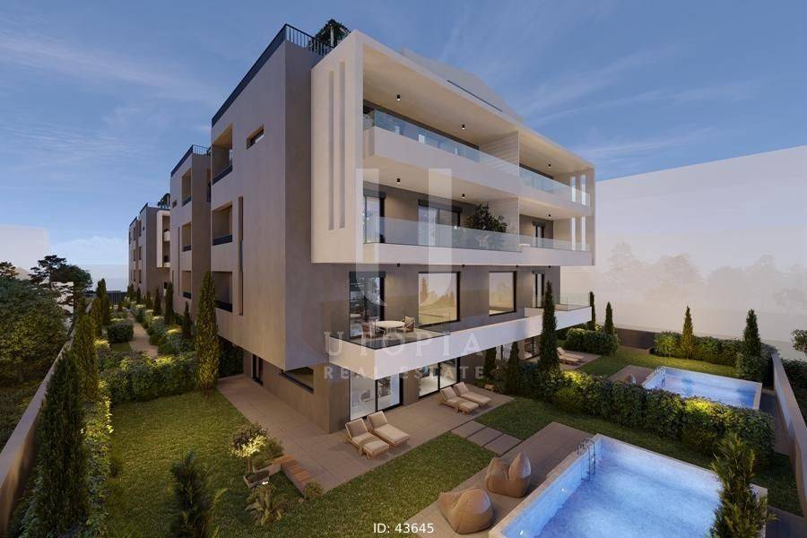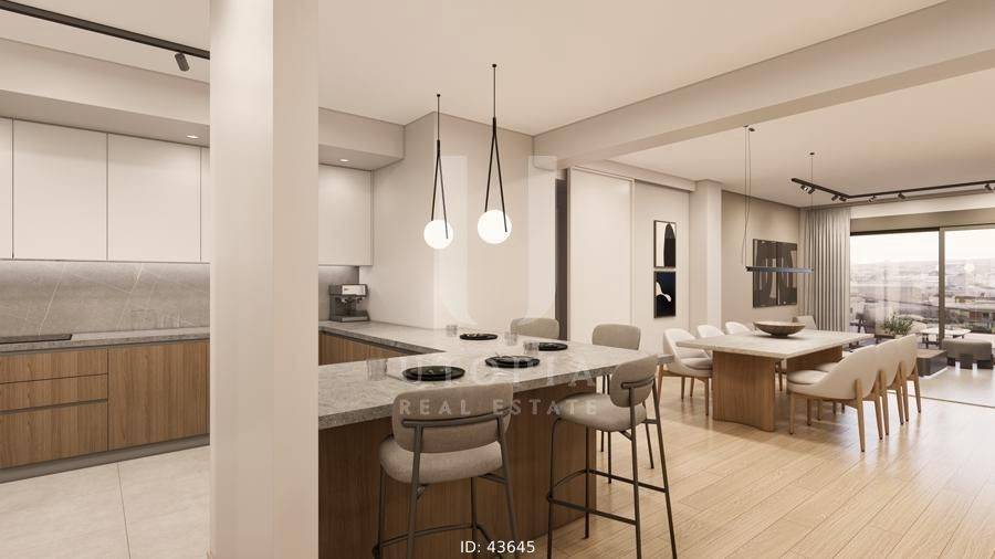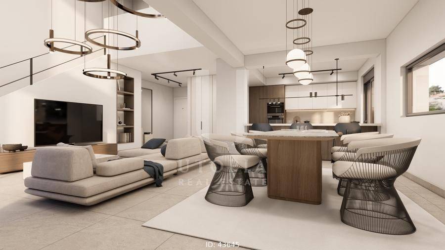 Pefki - Full floor Maisonette 130sqm bedrooms 3, master bedroom, levels 2, 3rd (85sqm) - 4th (45sqm), penthouse, newly built, year built 2025, energy class A++, living room, kitchen, 2 bathrooms, wc, heating type: autonomous (heat pump), air condition, parking covered, quiet, dual aspect apartment, luminous, corner, panoramic view, frontage, electric roller shutters, storage space, solar heater, external thermal insulation, balconies, large balconies, elevator, garden, private terrace, thermal shut-off frames, double glazed windows, door screen, wood floors, three phase electricity, secure door, alarm, video doorbell, luxurious, internal staircase, ev charger, internet, residential zone, close to super market (up to 200m), close to market (up to 100m), close to school (up to 200m), close to attiki odos (up to 1500m).