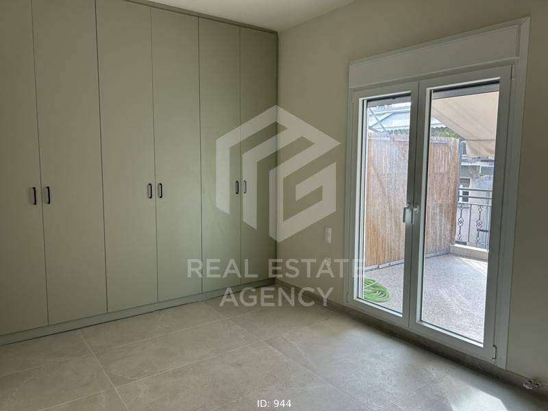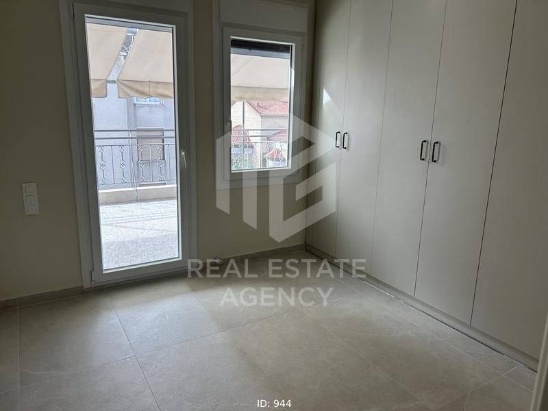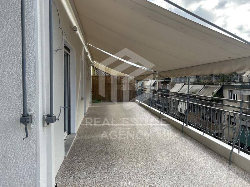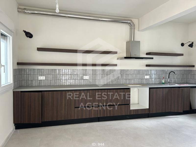 Penthouse for rent of 109 sq m in Agios Panteleimonas. Going up to the apartment we see the open plan living room and kitchen. The living room has access to the large and bright balconies. In the hall upon entering the house there is a built-in wooden wardrobe. There are two bathrooms with showers as well as an intercom. On the left of the house are the two large bedrooms with built-in, wooden wardrobes with hidden lighting. Both bedrooms have access to the balcony. The penthouse is located on the 6th floor, is fully renovated and pets are allowed in the apartment building. The common areas range from 13-18€ per month. It is an excellent choice as it is located near the metro and bus stop, market, University, entertainment and bank. It is an ideal choice for a family or a couple wishing to start a family. R.P