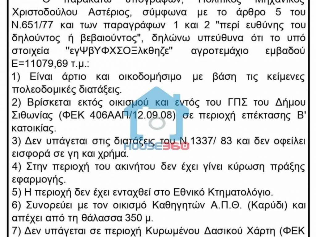 Βουρβουρού, Σιθωνία - Χαλκιδική: Πωλείται Αγροτεμάχιο 11079 τ.μ. άρτιο και οικοδομήσιμο, ιδανικό για κατασκευή Τουριστικής Μονάδας, δίπλα στον Οικισμό Α.Δ.Π.ΑΠΘ και σε απόσταση 350μ. από την παραλία. Τιμή 650.000€ | Κωδικός Ακινήτου: #ΝΝ59