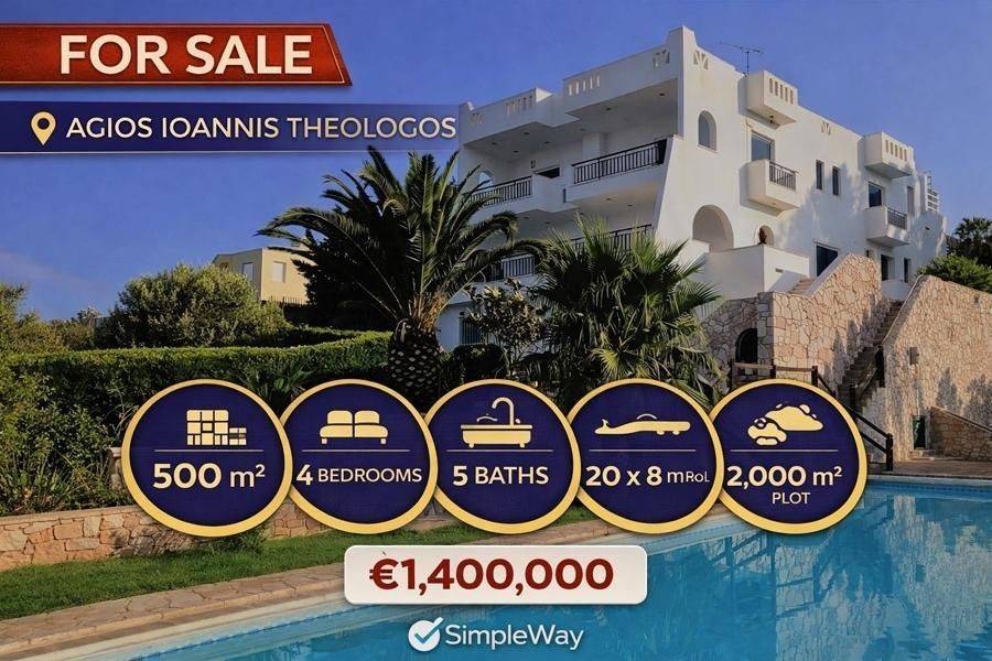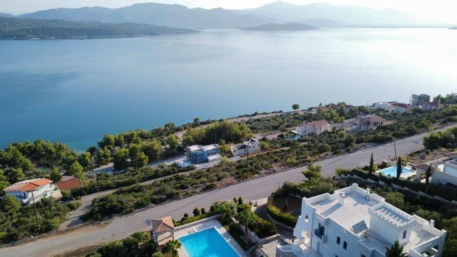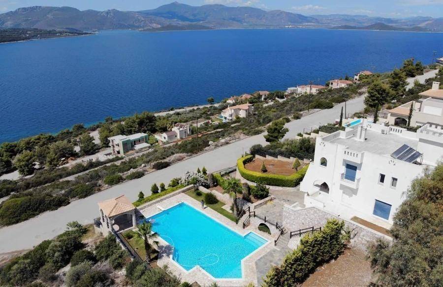 Malesina, Osmaes - Villa 500sqm plot 2000sqm, bedrooms 4, levels 3, excellent condition, year built 1996, energy class C, living room, kitchen, 5 bathrooms, heating type: autonomous (oil), air condition, parking open space, dual aspect apartment, luminous, frontage, storage space, solar heater, fireplace, balconies, large balconies, tents, aluminum frames, double glazed windows, door screen, marble floors, secure door, video doorbell, luxurious, swimming pool, residential zone.