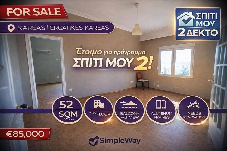 Vyronas, Kareas - Apartment 52sqm bedroom, levels 1, 2nd, needs renovation, year built 1960, energy class D, living room, kitchen, bathroom, heating type: no heating, luminous, unobstructed view, frontage, aluminum frames, pets allowed, residential zone, price is negotiable.