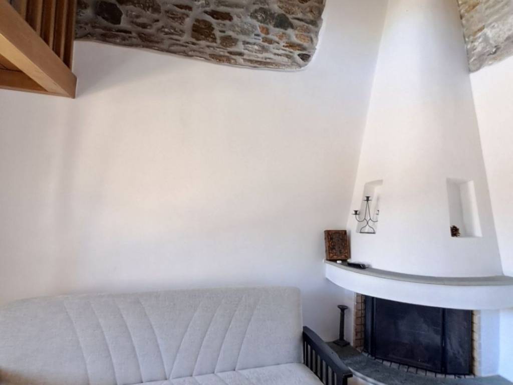 Apartment/loft of 61 sq.m., for rent, in Grampias, Karystos, with sea and mountain view. It has a spacious open-plan living room, kitchen, and dining area on the ground floor, with the bedroom located on the mezzanine. It includes a washing machine and dishwasher, air conditioning and a veranda.