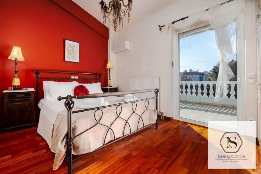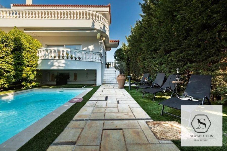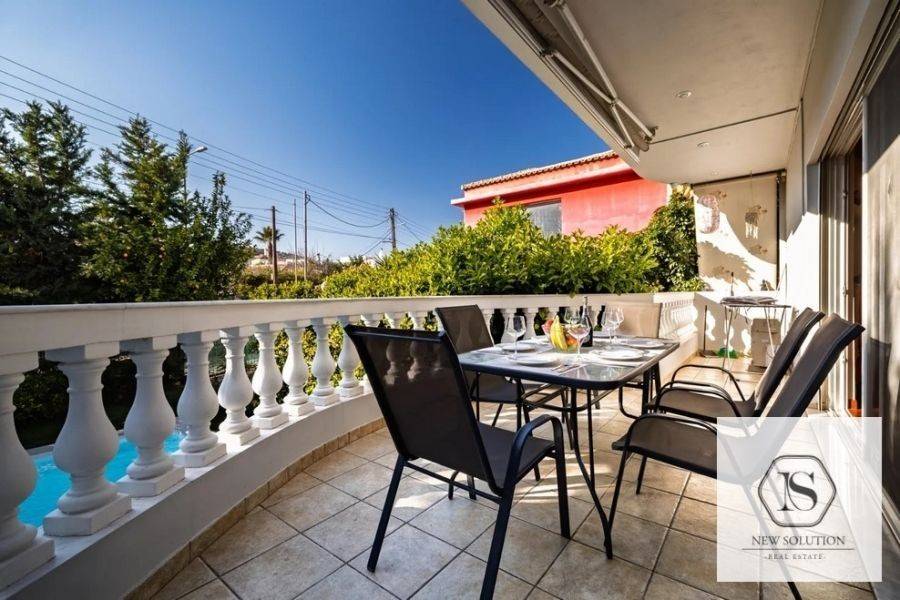 Vari-Varkiza, Asyrmatos, Maisonette For Rent, 240 sq.m., Property Status: Amazing, Floor: Ground floor, 2 Level(s), 6 Bedrooms 2 Kitchen(s), 3 Bathroom(s), Heating: Autonomous - Petrol, Building Year: 2006, Energy Certificate: B, 1 parking(s), Floor type: Wooden floors, Type of door frames: Aluminum, Features: Security door, Security alarm, CCTV, Storage room, Fireplace, Night stream, Playroom, Internal Staircase, Double Glazed Windows, Balconies, Furnished, Luxury, Airy, Roadside, Bright, On Corner, AirConditioning, Solar water system, Swimming pool, Back yard (Garden), Distance from: Seaside (m): 500, Price: 4.600€. NEW SOLUTION REAL ESTATE, Tel: (+30) 210 9680099-(6944848414), email: info@newsolution.gr