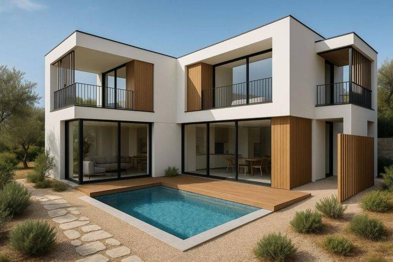 This villa benefits from cutting-edge metal-frame construction technology, offering excellent energy efficiency, fast build time (just 4 months until completion), and high seismic resistance. It features underfloor heating throughout the ground level and bathrooms, a smart home system with full remote control, and a 10 kW solar panel installation. The property also includes a private swimming pool, sauna, herbal steam barrel, outdoor BBQ, and private parking. It will be delivered turnkey: fully furnished, equipped with all major appliances, and beautifully decorated.