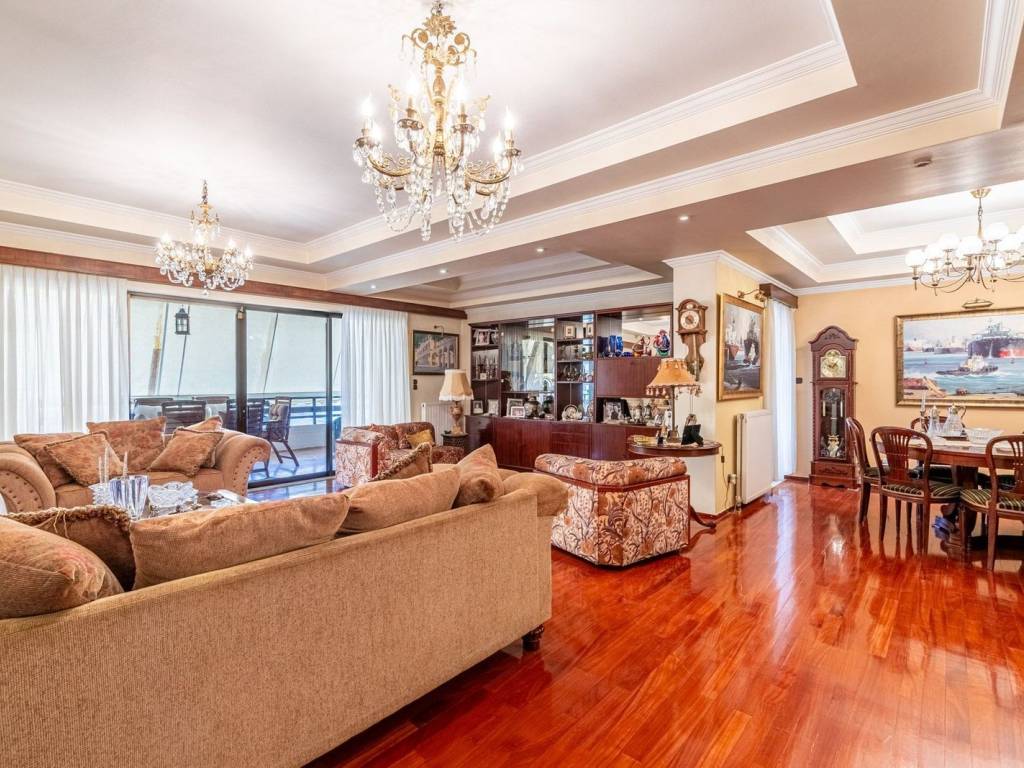 Few meters from the Glyfada Golf, you will find an excellent proposal for a penthouse apartment - 211 sqm with panoramic views. Its eastern orientation gives the feeling of a sunlit apartment throughout the day! Upon entering the apartment, you will encounter an iconic and bright living room with a fireplace, as well as the dining area. Subsequently, there is a smaller space that can also be utilized as a living room, in case family members wish for a few moments of seclusion and relaxation with the accompaniment of a pleasant book. Continuing, you are led to a closed kitchen, which can be converted into an open plan. Regarding the bedrooms, there are three comfortable bedrooms (one of which is a master), one bathroom, and a guest WC. Finally, the apartment is surrounded by perimeter balconies with views from Hymettus to Piraeus. In terms of technical features, it is worth noting that there is autonomous oil heating as well as solar. There are also 2 parking spaces, one of which is enclosed, and a storage room in the basement. The above property is an excellent solution for a family of four as well as for investment, as we are in close proximity to the center of Glyfada and naturally near the Hellenico project. Location: Glyfada is the commercial hub of the Athenian Riviera with bustling commercial activity during the day and vibrant nightlife until dusk. It is a fashion destination with many branded boutiques as well as numerous shops with flair and style. Bordered on one side of the city by the unique 18-hole golf course and next to it with hiking and cycling trails, Glyfada promises to offer the best for all lifestyles. Unique features: A modern seaside destination with easy access to beaches, cafes, restaurants, and summer beach bars and clubs. Glyfada is close to international schools and provides a safe environment for raising children, offering numerous entertainment, fitness, and sports opportunities and serving as an investment choice with rewarding benefits. Additionally, the area features cinemas, modern boutiques, restaurants to suit every taste and budget, bars, vibrant outdoor life, and one of the largest marinas along the coast. Accessibility: Glyfada is well connected with the city center and the coast by metro, tram, and buses and is just a 30-minute drive from the port of Piraeus, offering quick escapes to the islands and 35 minutes from the international airport. Investment potential: Glyfada has always been attractive to real estate investors and with the new redevelopment project of Elliniko, it is set to experience a strong rise in property prices.