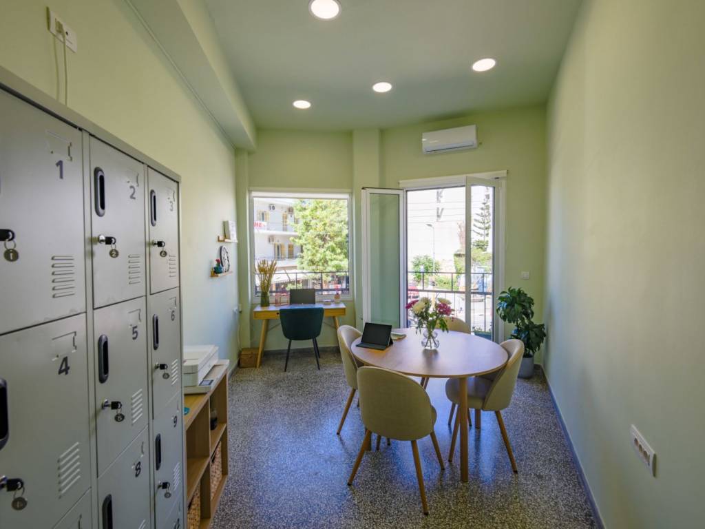 Ενοικιάζεται επαγγελματικός χώρος με ωριαία ή ημερήσια μίσθωση για επαγγελματικά ραντεβού. http://****.** Ο χώρος είναι εξοπλισμένος με ένα γραφείο- επιφάνεια εργασίας, ένα τραπέζι συνεδριάσεων 4 θέσεων. Διαθέτει lockers, laptop, iPad, printer, scanner, espresso machine,a/c. Ιδιωτικό μπαλκόνι με θέα την Δημοτική Αγορά Χανίων.