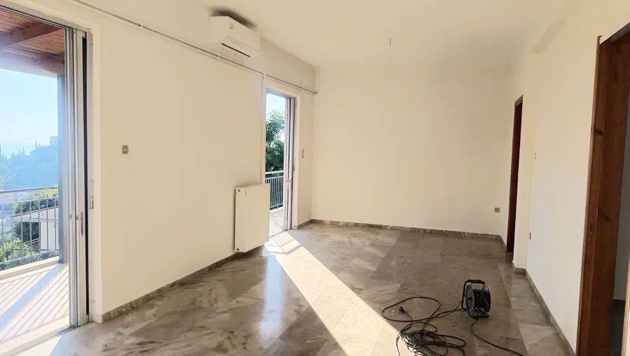 Doxato - Apartment 115sqm plot 800sqm, bedrooms 2, levels 1, 1st, renovated, year built 1985, energy class C, living room, kitchen, bathroom, heating type: autonomous (oil), air condition, luminous, frontage, painted, balconies, balcony 5sqm, tents, elevator, aluminum frames, marble & tile floors, residential zone, east-western orientation, access from inclined, close to sea (up to 2000m).