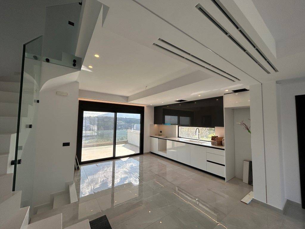 ΠΑΓΝΗ ΗΡΑΚΛΕΙΟΥ ΚΡΗΤΗΣ (4 χλμ. απόσταση από το ΠΑΓΝΗ προς τον οικισμό Σταυράκια, 9 χλμ. απόσταση από την παραλία της Αμμουδάρας και 11 χλμ. απόσταση από το κέντρο της πόλης του Ηρακλείου). Νεόδμητη (2025), υπερπολυτελής, σύγχρονης αισθητικής και αρχιτεκτονικής σχεδίασης, αυτόνομη, αποπερατωμένη μονοκατοικία-μεζονέτα συνολικού εμβαδού 162 τ.μ.,(σε τρία επίπεδα) κατασκευασμένη μέσα σε οικόπεδο 750 τ.μ., η οποία διαθέτει, στο ισόγειο 48 τ.μ. με μεγάλο ενιαίο χώρο κουζίνα-σαλόνι-τραπεζαρία, λουτρό, βεράντες, κήπο, χώρους στάθμευσης αυτοκινήτων με δυνατότητα εγκατάστασης φόρτισης ηλεκτρικών αυτοκινήτων, ηλεκτρική γκαραζόπορτα, ξεχωριστή εξωτερική πόρτα εισόδου επισκεπτών, πέτρινα τοιχία, στον πρώτο όροφο 57 τ.μ. 3 άνετα υπνοδωμάτια με μεγάλες εντοιχισμένες ντουλάπες, μεγάλο λουτρό, δύο μπαλκόνια, στο υπόγειο 57 τ.μ. ένα μεγάλο ενιαίο χώρο με πολλές δυνατότητες χρήσης, αυλή, κήπο 600 τ.μ., δυνατότητα κατασκευής πισίνας, jacuzzi, παιδότοπου, βραχόκηπων κ.α. Όλοι οι όροφοι συνδέονται με εσωτερική σκάλα. Το υπόγειο μπορεί να έχει και ανεξάρτητη χρήση. Η μονοκατοικία είναι ενεργειακής κλάσης Α+ (κτίριο με σχεδόν μηδενική κατανάλωση ενέργειας, φωτοβολταϊκά πάνελ βρίσκονται στο δώμα). Η εξωτερική τοιχοποιία του κτιρίου διαθέτει άριστης ποιότητας θερμο-υγρομόνωση (κέλυφος), διαθέτει αντλία θερμότητας για ψύξη και θέρμανση με ανεξάρτητο έλεγχο χρήσης για κάθε όροφο και κάθε δωμάτιο, θερμο ηχομονωτικά κουφώματα υψηλής ποιότητας, με τριπλά ενεργειακά τζάμια, σήτες, ηλεκτρικά παντζούρια,σε όλα τα εξωτερικά κουφώματα, ηλιακό θερμοσίφωνο, εγκατάσταση για συναγερμό (με μαγνητικές επαφές στα κουφώματα, ανιχνευτές κίνησης, εξωτερικές κάμερες με καταγραφικό). Επίσης διαθέτει δομημένη καλωδίωση με ενσύρματο για δίκτυο δεδομένων (data) και «smart home». τεχνολογία που συνδέει και ελέγχει τις συσκευές ενός σπιτιού (φωτισμός, θέρμανση, ασφάλεια, ηλεκτρικά ρολά κ.λπ.) μέσω του διαδικτύου, επιτρέποντας την απομακρυσμένη διαχείριση και αυτοματοποίηση. Πόρτα εισόδου ασφαλείας, τριφασικό ρεύμα, υπόγεια δεξαμενή νερού με μεγάλη επάρκεια σε περίπτωση διακοπής παροχής από το δημόσιο δίκτυο. Όλα τα υλικά κατασκευής, η κατασκευή και η επίβλεψη της μονοκατοικίας είναι υψηλής ποιότητας με μεγάλη προσοχή στις λεπτομέρειες. Το σημείο που βρίσκεται η μονοκατοικία είναι σε ύψωμα, είναι ήσυχο, το περιβάλλον είναι πολύ πράσινο και έχει πλησίον του πολλές νεόκτιστες πολυτελής μονοκατοικίες. Έχει εύκολη πρόσβαση προς την πόλη του Ηρακλείου, την εθνική οδό και το διεθνές αεροδρόμιο. Είναι ιδανικό για μόνιμη ή εξοχική κατοικία ή για τουριστική εκμετάλλευση τύπου Airbnb. Από όλα τα σημεία της κατοικίας και του οικοπέδου υπάρχει ανεμπόδιστη, πανοραμική θέα προς τα βουνά, την πόλη του Ηρακλείου και την θάλασσα. Π.Ε.Α= Κατηγορία Α+. Αποκλειστική Ανάθεση. Τιμή 395.000 €. Τηλ. 2810-261735 & 6944-240105. www.axi.gr Επένδυση αξίας μεσιτικό. ΚΩΔ.ΓΣ9615