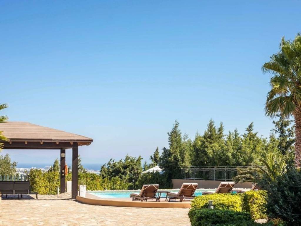 This opulent villa is in an excellent location on the outskirts of Rhodes town, offers a sense of complete privacy, with riveting views to the sea, the picturesque village of Koskinou and the town. The stylish open space of the living room, dining room and kitchen, blends with the exterior patio through the glass doors and copious windows, submerging the interior with light. A superb layout that incorporates quality, a contemporary kitchen, fireplace and WC. An impressive marble staircase (or elevator) leads to the first floor with 3 bedrooms and two bathrooms located at the front of the property overlooking the swimming pool. A master bedroom enjoys and ensuite bathroom and a dressing room while the other two bedrooms share a family bathroom. The second floor has an additional bedroom and a WC and access to a roof terrace which has an external shower. Imposing exterior spaces offer generous terraces for outdoor furniture and look out over the lovingly cared for gardens and pool, which in turn offers a great setting for relaxation in the balmy Rhodian summer. A built-in barbecue and wood oven is located under the expansive pergola for outdoor entertainment with family and friends. Set within the town limits therefore close to a wide range of infrastructure but also only 8 minutes by car to Kallithea Springs. Location: 7km southeast of Rhodes town. Unique features: Built in an amphitheatrical manner, Koskinou has developed well beyond the traditional settlement it originally was and is one of the most important medieval villages of the island. Additionally, the renowned Kalithea Springs known from the days of knights can be found a few kilometers from the village which is a popular tourist attraction surrounded by the crystal waters of the Aegean. On the outskirts of the village, the buildings are more modern; this is where wealthy people from the town of Rhodes have been having homes built in recent years, attracted by the village's short distance from town. Accessibility: A regular bus service running all year round from Rhodes town. Investment potential: Here, outstanding residential areas with exclusive real estate can be found, which in some cases boast prices that can reach twice the usual market average. Traditional houses in the old village center are also very sought after but depending on their condition, their prices can vary a lot.
