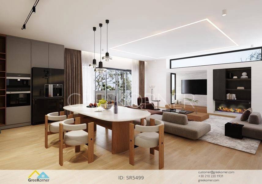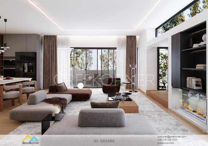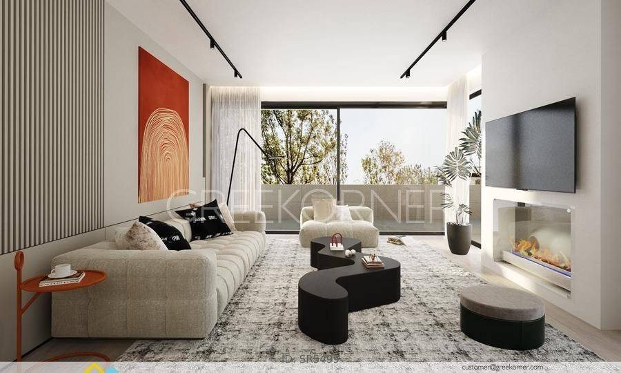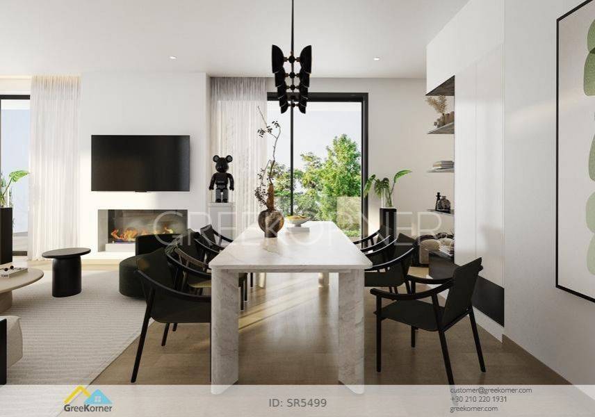 Marousi, Paradisos - Apartment 128sqm bedrooms 3, master bedroom, levels 1, 2nd (128sqm), newly built, year built 2025, energy class A++, living room, kitchen, 2 bathrooms, wc, heating type: autonomous (infrared), air condition, parking covered, luminous, corner, unobstructed view view, frontage, painted, drop ceiling, electric roller shutters, storage space, solar heater, boiler, external thermal insulation, fireplace, balconies, large balconies, elevator, thermal shut-off frames, double glazed windows, door screen, handicap ramp, separate kitchen, three phase electricity, night electricity discount rate, secure door, alarm, surveillance cameras, video doorbell, safety box, luxurious, under floor heating, barbeque, smart home, cloakroom, ev charger, satellite, internet, laundry room, pets allowed, within city plan, residential zone, access from asphalt, close to market (up to 200m), close to super market (up to 100m), close to bus stop (up to 100m), close to banks (up to 1000m), close to metro/train (up to 2000m), close to square (up to 200m).
