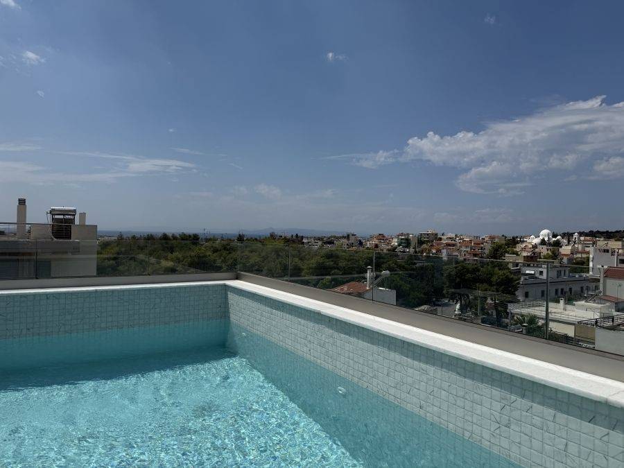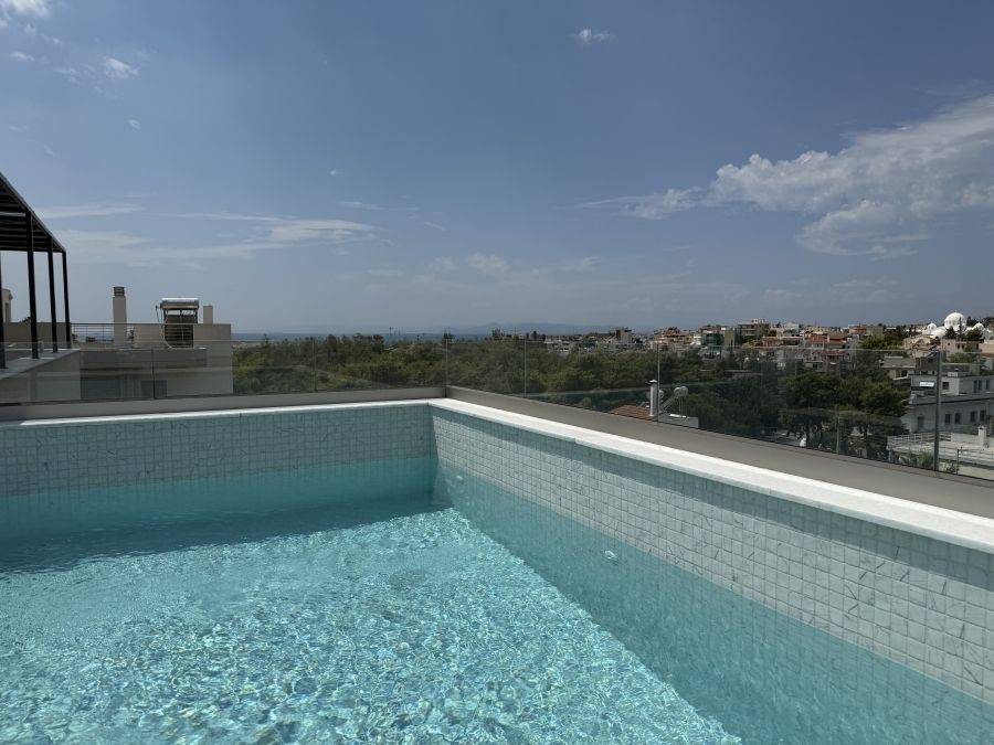 In the southern suburns, in the area of Alimos, a luxurious penthouse maisonette is available for sale, offering 171 sq.m. of living space in a modern building completed in 2024. It features exclusive use of a rooftop equipped with a private pool and an open horizon with panoramic views of both the mountain and the sea. The 2nd floor spans 112 sq.m. and includes a spacious living room, a modern and fully equipped kitchen, as well as two bedrooms, one of which is a master bedroom with an en-suite bathroom. There is also an additional bathroom in the hallway, serving most of the common areas. The 3rd floor, 59 sq.m., has a large reception area that can be used as a second living room, office, or playroom, as well as another master bedroom. The two floors are connected via a wooden internal staircase, while the external elevator serves all floors (2nd, 3rd, and 4th), each with separate entrances. On the 4th floor, which leads to the rooftop, exclusive use is granted. The rooftop features the private pool (15 sq.m.), a W/C and outdoor showers, offering uninterrupted views and complete privacy. A key feature of this property is the spacious balconies, extending at the front, back and side, as well as the large windows throughout the spaces, which flood the home with natural light, enhancing its brightness at every point. Additionally, the property includes two 15 sq.m. storage rooms in the basement and two parking spaces. It has an energy efficiency rating of A+ (67N6N-UT773-E5M2B-F), with independent climate control in all rooms, a high-performance photovoltaic system with net consumption measurement and underfloor heating. The heat pump heating system, heat recovery system and external thermal insulation provide maximum comfort and energy savings. The energy-efficient windows and doors enhance the home`s sustainability, while the KNX smart system allows direct control over the property`s functions. High-quality integrated appliances, CCTV system and modern finishes further elevate the luxurious feel of the space. The penthouse is ideally located, close to the beach and very near the areas of Glyfada, Voula and the new project at Elliniko.