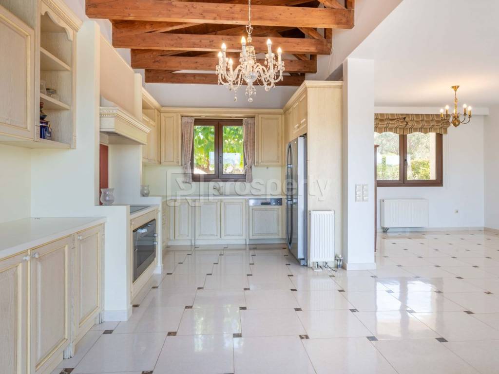 Villa of 430 sq.m. on a 6,000 sq.m. plot in Porto Rafti, Markopoulo. This bright villa, built in 2008, spans three floors and includes a semi-basement with an independent entrance that can function separately. The floors are tiled with custom made wooden elements on the internal staircase and kitchen The property features five bedrooms, a walk-in closet in the master bedroom, four bathrooms, two kitchens, two living rooms, 2 fireplaces, a playroom, large verandas on both facades, and a dual-aspect layout providing abundant natural light and ventilation. Additionally, it includes a 32 sq.m. swimming pool, a BBQ area, and an outdoor space with a sunshade for relaxation. Key advantages of the villa include its location just a 5-minute drive from the beach and 20 minutes from the airport, less than 5 minutes from local amenities such as bars, cafes, supermarkets, and restaurants, and a setting that offers privacy and views of the surrounding countryside. https://marketplace.theprosperty.com/listings/14075 ☎️ 210 6812500