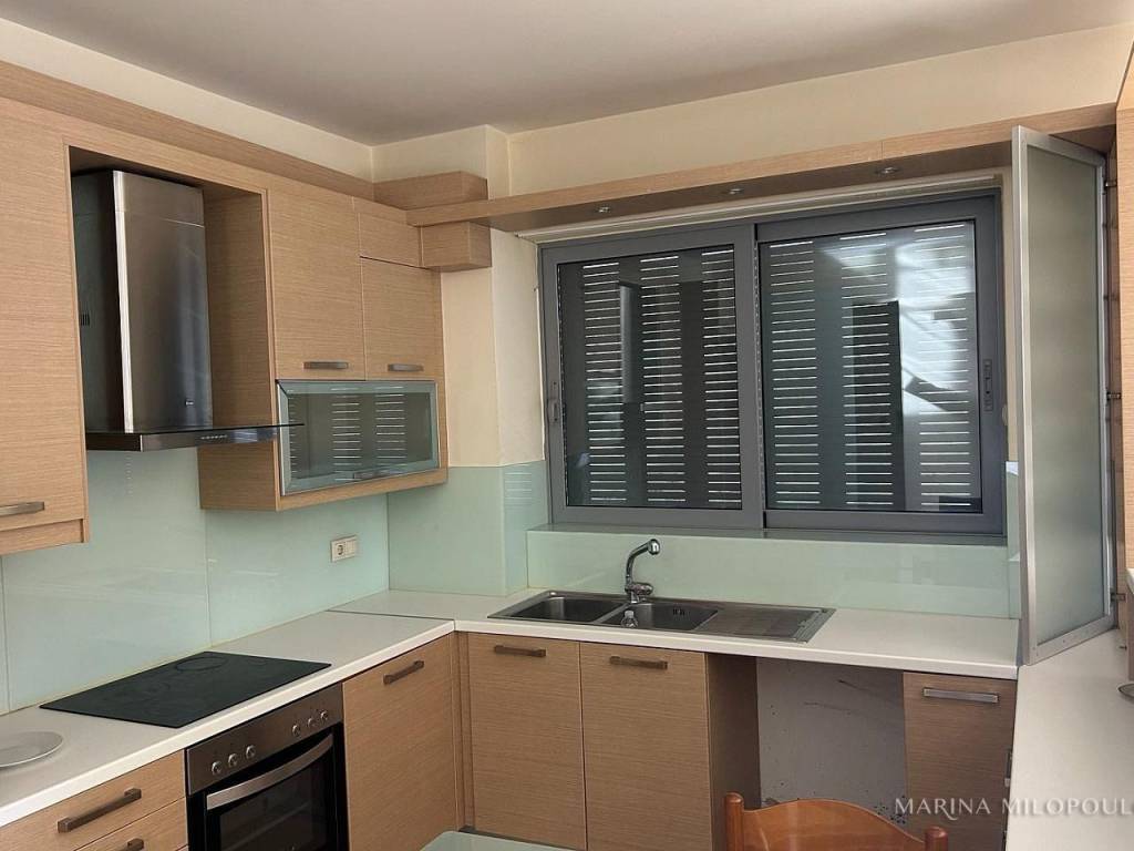 VOULA-Kato, near the center, Apartment, 1st floor, 100sqm, at the back of the building, overlooking the garden, west orientation. It consists of an open-plan reception-dining room, living room with fireplace and exit to a large terrace overlooking the garden, open-plan kitchen, with oven-hob, 2 bedrooms, 1 bathroom and 1 wc. It has a security door, autonomous natural gas heating, fireplace, 1 a/c, double glazing, electric roller shutters, solar water heater, oak floor in the bedrooms and tile in the rest of the house, alarm, basement storage room, 1 underground parking space. It is part of a 3-story building of 8 apartments. Zone price 2800€ Beautiful, quiet neighborhood with lots of greenery, 600m from the center of Voula, 1km from a sandy beach, 1.3km from the second beach of Voula, 4.2km from the new marina of Asteras.