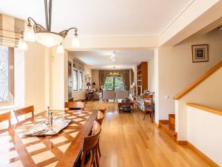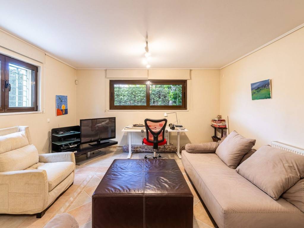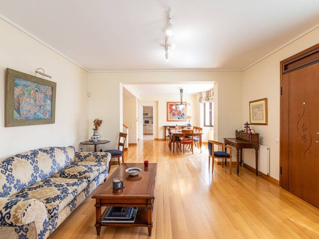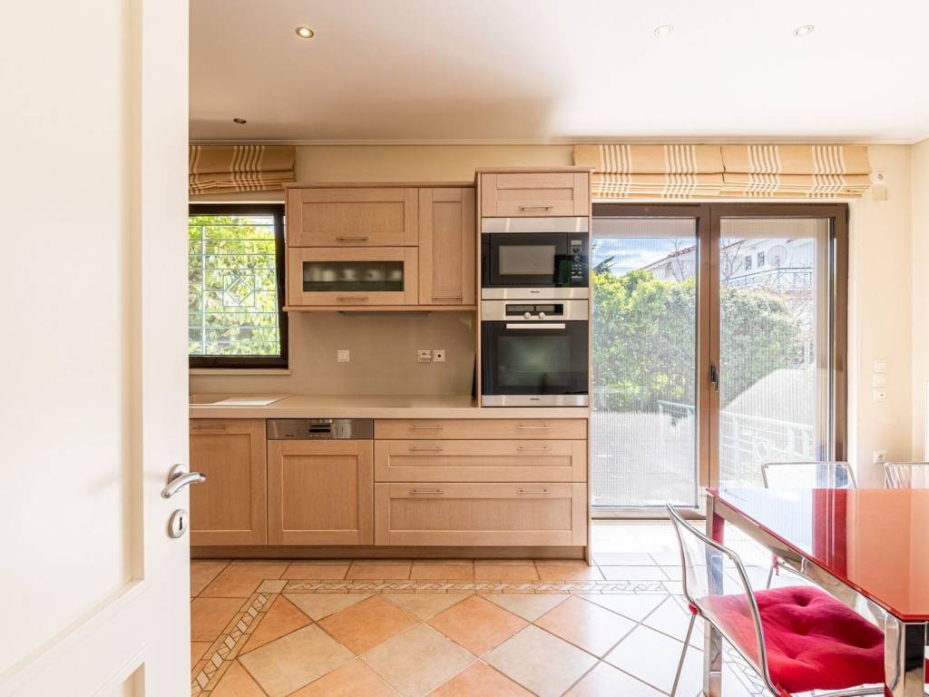 Discover your dream home just minutes from the sea, in a quiet and family-friendly neighborhood in Pigadakia, Voula! This elegant semi-detached maisonette of 300 m² offers all the comforts of modern living within a peaceful and idyllic setting. On the elevated ground floor, with a total area of 99.94 m², the main entrance leads to a welcoming reception area that features a spacious living room with a fireplace and an open-plan dining area. Large openings allow natural light to flood the space throughout the day, while direct access to a generous front terrace offers beautiful views of the greenery. On the same level, the large main kitchen is fully equipped with modern appliances and includes a spacious dining area, ideal for daily family meals. The kitchen opens onto a private garden of approximately 40 m², complete with a wooden deck and perimeter planting, creating a charming and tranquil space for relaxation and entertaining guests. The first floor, covering 81.43 m², serves as the sleeping area and consists of a spacious master bedroom with a large en-suite bathroom and a private balcony overlooking the garden. Additionally, there are two bright bedrooms, one of which has access to a quiet front-facing balcony with lovely neighborhood views. Both bedrooms share a common bathroom. On the second floor, a beautiful 15 m² attic can be adapted as a home office, gym, or cozy sitting area, depending on the needs of the new owner. This space also benefits from a balcony with panoramic views of the area. The basement, with a total area of 99.94 m², functions as a fully independent apartment, perfect for guests or staff. It includes a spacious living room, a fully equipped kitchen, a primary bedroom, a staff room, a bathroom, and an additional room with built-in storage cabinets. Large windows ensure plenty of natural light, creating a pleasant atmosphere. All levels are connected by an elegant internal staircase, while the residence also features an internal elevator with stops from the first floor down to the underground garage. The garage offers two parking spaces and additional storage. The energy efficiency class of the house is C. Just five minutes from the vibrant center of Voula, this residence provides easy access to shops, restaurants, and essential services while remaining within close proximity to the stunning beaches of the Athenian Riviera. Whether you are looking for the perfect primary residence or a unique vacation retreat, this impressive maisonette is a rare opportunity not to be missed! Location: Voula is a prime location on the Athens Riviera as it is very close to all amenities and just 30 minutes away from Athens’ historic city center. Unique features: Voula is a vibrant but peaceful and safe residential area that is home to trendy boutiques, wine bars, cafes, restaurants, a magnificent coastline and boasts a well-equipped public hospital. It has a lively commercial center with supermarkets, gyms, banks and is very close to international schools. Accessibility: Accessible by bus to the city center and to Glyfada, the closest commercial hub and just a 20-minute drive away from the Athens International Airport. It is a ten minute drive from the biggest new real estate development project in Hellinikon. Investment potential: Like most areas on the Athens Riviera, property prices here will always offer a good return on investment.