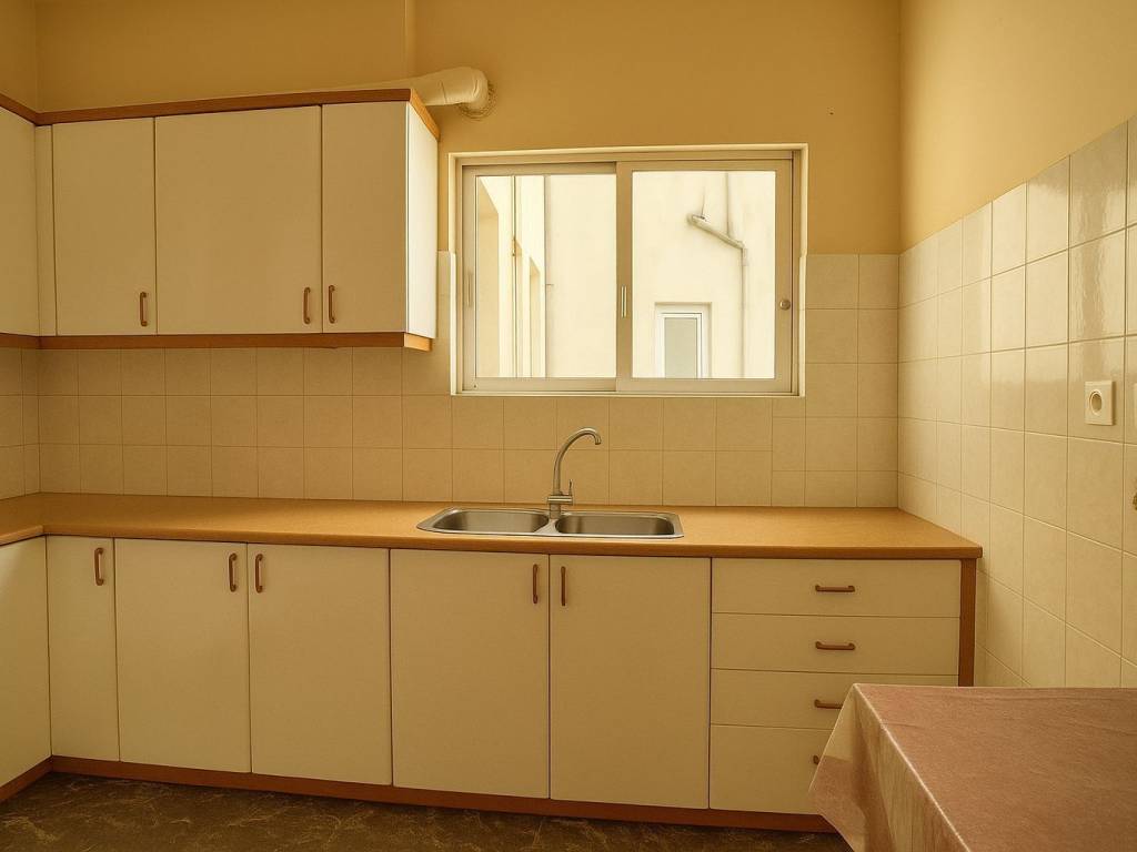 For sale is a second floor apartment of 103 square meters with two spacious bedrooms (there is a possibility for a third), bathroom, wc, small storage room next to the kitchen, large living room-dining room and separate kitchen. It is suitable for residence, for tourist exploitation or for commercial premises. It is located in the center of Chania, a hundred meters from the municipal market square. In the basement there is a second storage room of 22 square meters. The apartment is sold only with cash.