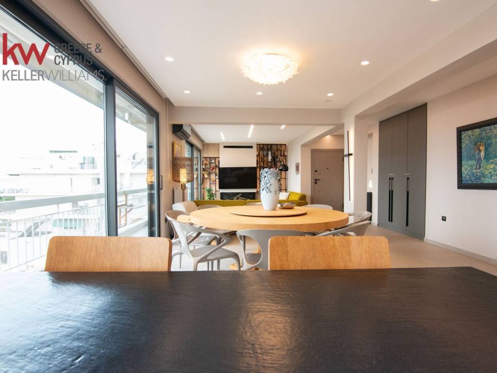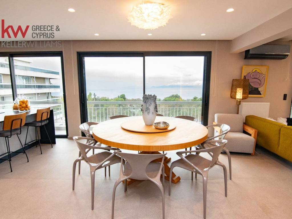 Paleo Faliro – Flisvos. Impressive apartment of 130 sq m for sale on the 7th floor, with unlimited sea views and just 300 meters from Flisvos Park. The property has been fully and luxuriously renovated in 2023, with high quality materials and a modern design that combines elegance and comfort. It is available fully furnished and equipped with branded electrical appliances. It consists of a spacious living room with a natural gas fireplace and unlimited sea views, an open dining area and a modern kitchen with an island, 3 bedrooms (one master with a walk-in closet), 1 bathroom, 1 WC and a laundry room. The heating is autonomous with natural gas, it has air conditioning in all areas, solar water heater, aluminum frames with triple glazing, security door, alarm and cable TV. Included are an 8 sq m storage room and a parking space. Located in one of the most sought-after areas of the southern suburbs, close to Flisvos Marina, restaurants and parks, 15' from Elliniko Park, 45' by car from Athens Airport. Ideal choice for those looking for a luxurious seaside apartment with high aesthetics and comfortable living. VIDEO : https://youtube.com/watch?v=_gz05nyR72c For more information: KW Solutions Group, tel.: 2130414087, email: info@solutionsgroup.gr. It is necessary for the indication of the property to present the ID card or passport of ALL those who wish to see the property, before signing (by all) the relevant Indication Order. Finally, ask our Consultant about the Renovation possibilities and the advantages that our group company, "Resolutions - Renovations" offers you. See more on our main site: https://solutionsgroup.gr/