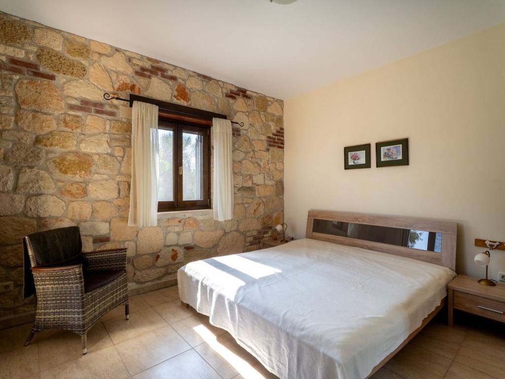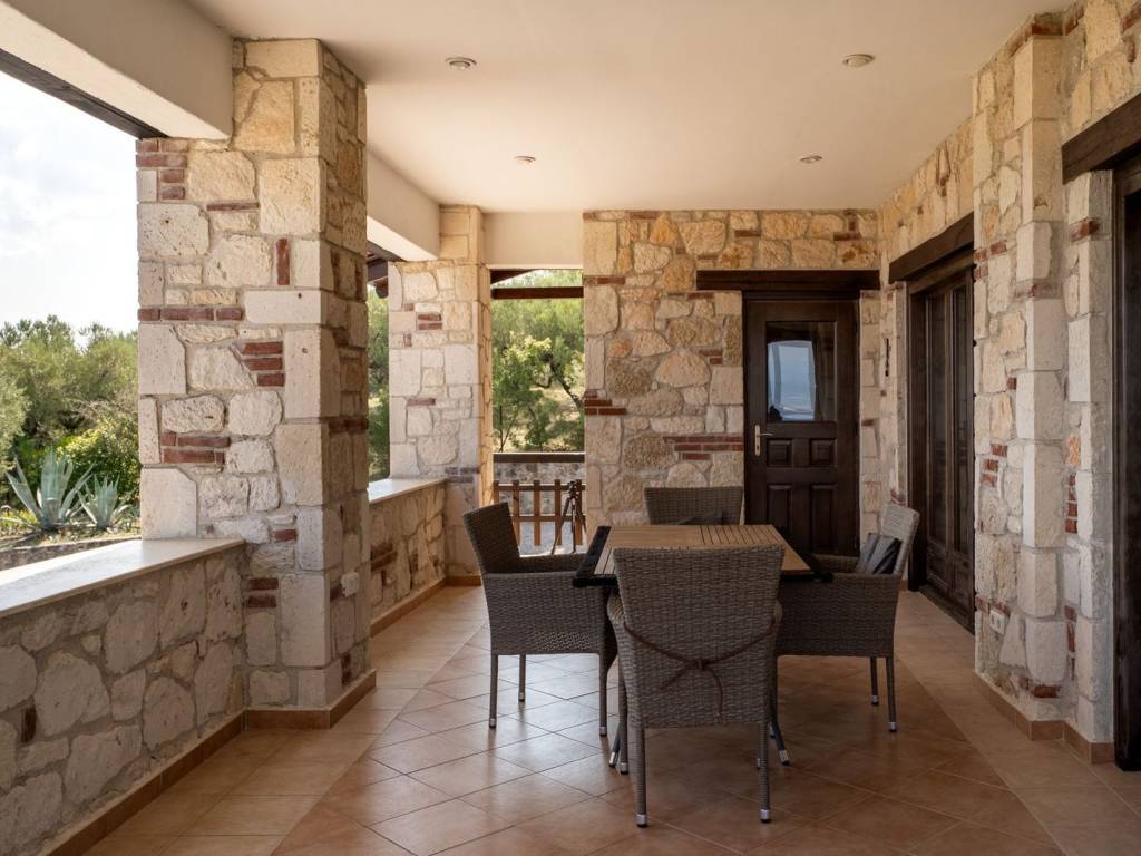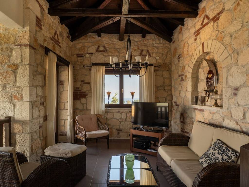 Discover this stunning detached house with an independent guesthouse, with a total area of approximately 400 sq.m. The property extends over a 2,045 sq.m. plot, surrounded by olive trees and fully landscaped outdoors. The house is located at the top of a hill, at the end of a cul-de-sac, ensuring absolute tranquility and security. Its location is privileged: just a 5-minute walk north is the center of the picturesque village of Agios Nikolaos, while heading downhill to the south you reach one of the most beautiful sandy beaches in the area, Trani Ammouda Beach. This multi-level property impresses with its traditional stone construction, which harmonizes perfectly with the natural surroundings—the forest to the north and the blue waters of the Siggitikos Gulf to the east. The property stands out for its layout. Upon entering the residence, you are welcomed by an open-plan living and dining area. The light wall colors and stone surfaces, combined with wooden details and light-toned floors, create a warm and inviting atmosphere. The fireplace, the beige-toned kitchen, and the imposing wooden staircase complete the picture. The staircase leads to an internal loft used as a second living room with a unique view. From there there is access to an open terrace with panoramic views of the Siggitikos Gulf—an ideal spot for relaxation, reading, and reflection. On the same level there are three spacious and bright bedrooms, each with its own bathroom, offering privacy for you and your family. Sea-view balconies enhance both the aesthetics and functionality of the building. The lower level functions as an independent space with its own entrance from the garden. It has its own living room, kitchen, and two additional bedrooms with en-suite bathrooms, which is a major advantage of the property. Heating is provided via central heating supported by solar panels. The first level features underfloor heating, while the second level is equipped with radiators. The garden is rich in greenery and plants, offering a high quality of life in every season. The olive trees surrounding the house provide the family’s annual olive oil. At the front of the house there is ample space for secure parking. Access to the property is easy, as Thessaloniki International Airport is approximately 60 minutes away by car. The property also offers the possibility of generating income through rentals. Do not hesitate to acquire this beautiful detached house, which you can enjoy not only as a holiday home but also as a year-round permanent residence. Agios Nikolaos is a beautiful area in Sithonia, known for its tranquility, good climate and close proximity to Trani Ammouda, Nikiti and Vourvourou, making it an ideal destination for the sea and leisure. The real estate market in Agios Nikolaos, Halkidiki, can vary depending on current conditions and demand. In Agios Nikolaos you will find a range of properties for sale, such as apartments, holiday homes, villas and plots of land to build your own home. There are investment opportunities due to the area’s tourist character. Of course, purchasing a property can be an investment opportunity, as you can rent your property to tourists during the summer.