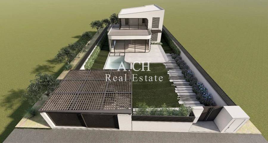 Kalyvia-Lagonisi, Lagonisi, Detached house For Sale, 240 sq.m., In Plot 650 sq.m., Property Status: under construction, Floor: Ground floor, 2 Level(s), 4 Bedrooms (2 Master), 1 Kitchen(s), 3 Bathroom(s), 1 WC, Heating: Autonomous - Fan Coil, View: Mountain View, Building Year: 2025, Energy Certificate: A+, 2 parking(s), Type of doors: Aluminum, Features: Security door, Security alarm, Storage room, Internet Line, Internal Staircase, Double Glazed Windows, Window Screens, Balconies, Luxury, Airy, Roadside, Bright, AirConditioning, Solar water system, Trees, Swimming pool, Back yard (Garden), Distance from: Airport (m): 22000, Seaside (m): 500, Price: 1.300.000€. A.CH REAL ESTATE, M: +30 6934414767, T: +30 , email: info@achrealestate.gr, website: www.achrealestate.gr