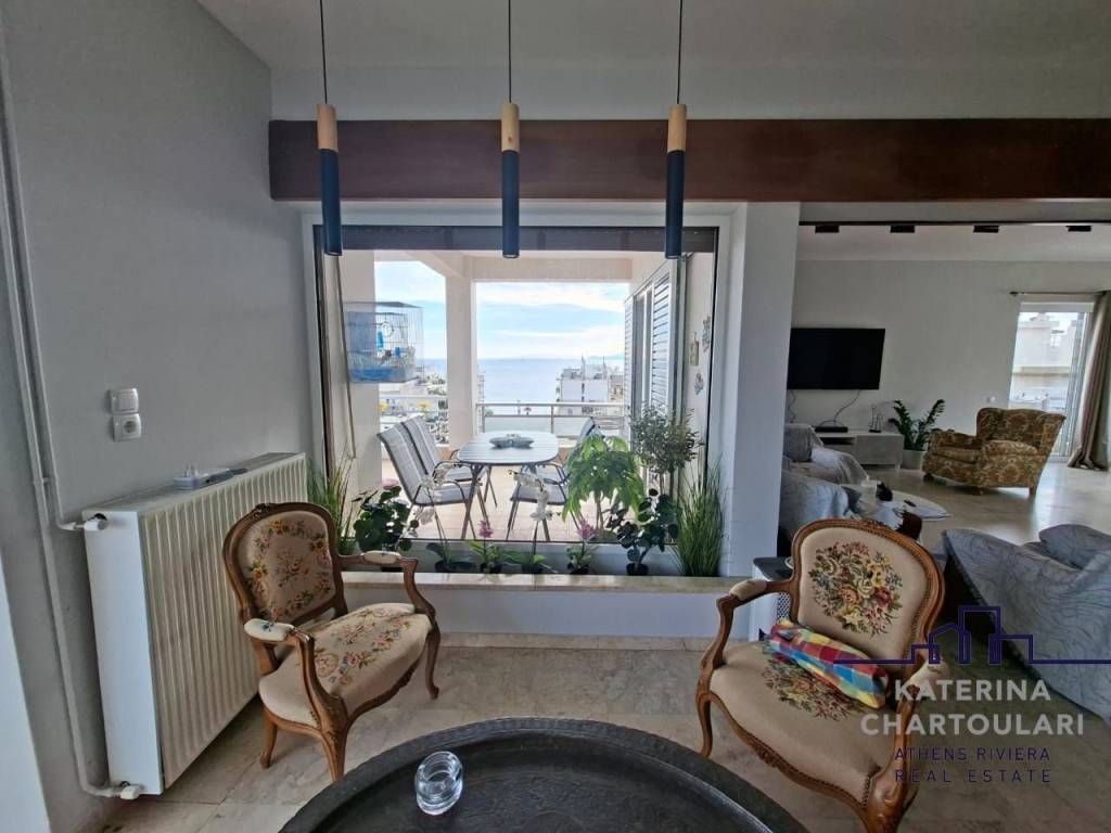 Apartment For sale, floor: 7th, in Palaio Faliro - Floisvos. The Apartment is 153 sq.m.. It consists of: 3 bedrooms, 1 bathrooms, 1 wc, 1 kitchens, 2 living rooms and it also has 2 parkings (1 Closed, 1 Open). The property was built in 1971 and it was renovated in 2025. Its heating is Personal with Natural gas, Air conditioning are also available, it has Alluminum frames with Double glazed windows, the energy certificate is: D and its floors are Tiles, Wooden, Marble. The property's status is: Renovated, Very good condition, it is close to Tram, Transportation, Park, Sea, Seaside, Local market, it has Sea, Acropolis, Openness, Panoramic, Unobstructed view. The Apartment is On Corner, Penthouse, With Facade, Bright, Airy, Sunny, Airy, Luxury and it also has the following unique features and advantages: Window Screens, Elevator, Electric Appliances, Storage, Security door, Security alarm, Porch. Price: €790.000. Katerina Chartoulari Real Estate, contact phone: 2108976105, email: info@chartoulari.gr, website: