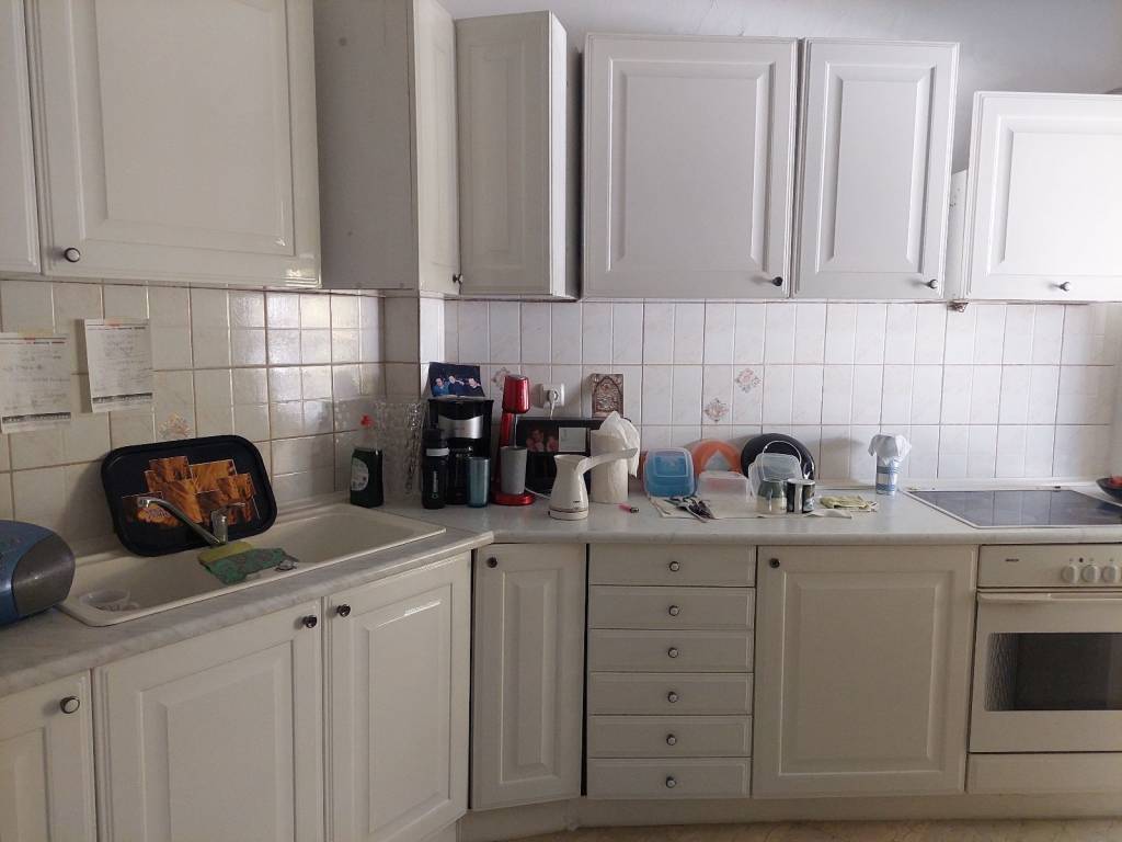 Πωλείται διαμέρισμα 1ο ορόφου χωρίς ασανσέρ .Ανετο μεγάλο 95 καθαρά μέτρα. Περιλαμβάνει σαλόνι κουζίνα χωριστά μπάνιο wc και δυο δωμάτια το ένα εξ αυτών τεράστιο σαν σαλόνι. Υπάρχει δυνατότητα να γίνει και τρίτο δωμάτιο αν πάρει τη κουζίνα από κει και την βάλει στο σαλόνι.