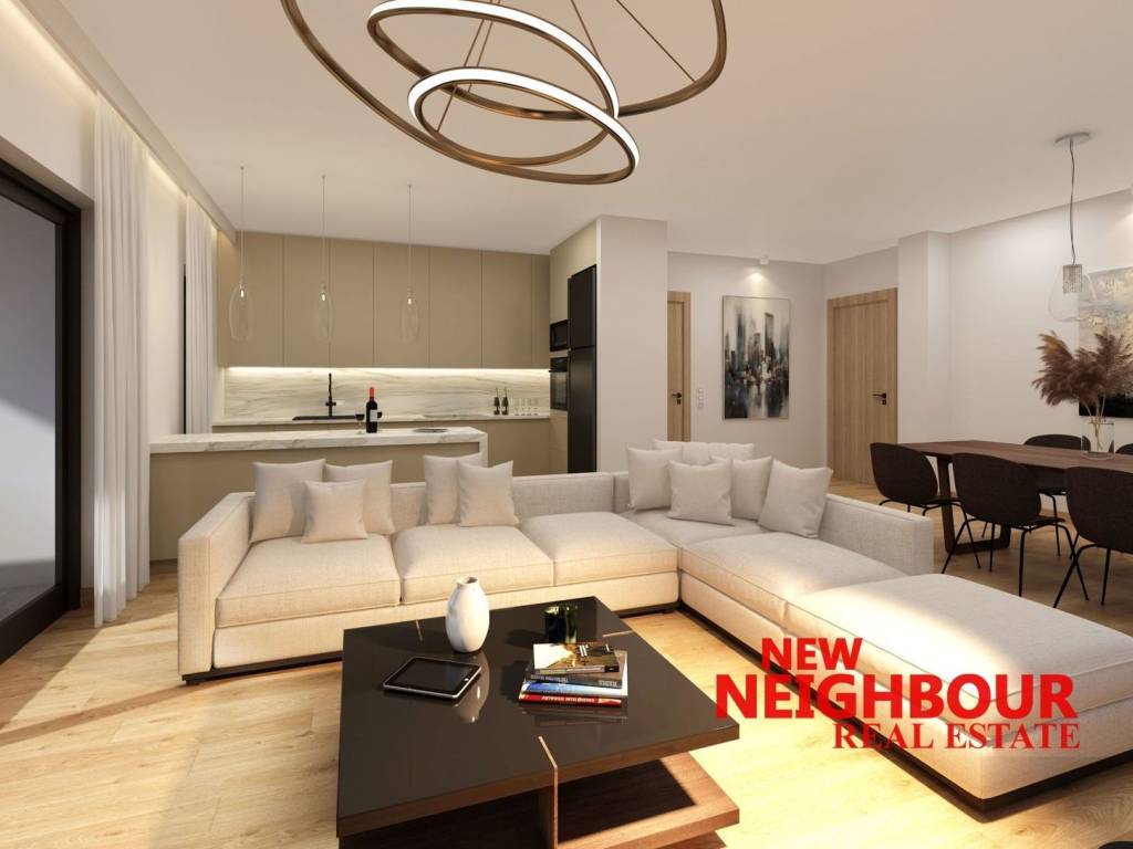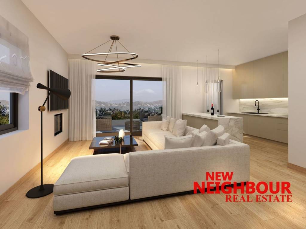 For sale is a 104 sq m ground floor apartment under construction in Ano Melissia, ready for delivery in the Fall of 2026. It has a spacious living room with an open kitchen, 2 bedrooms and 2 bathrooms. It has underfloor heating with a heat pump, air conditioning, electric water heater, energy-efficient windows with thermal breaks, alarm, energy-efficient fireplace, while the entire building is surrounded by a thermal facade and is of energy class A +. It also has a parking space in the basement and a storage room in the basement. It is a house with an exemplary layout, very high quality construction, which also includes the exclusive use of a beautiful garden. It is located in a very quiet neighborhood close to the markets of both Melissia and Nea Penteli. Price 480,000 euros. NEW NEIGHBOUR REAL ESTATE AGENCY, contact phone: 2167005657, email: info@newneighbour.gr, website: www.newneighbour.gr
