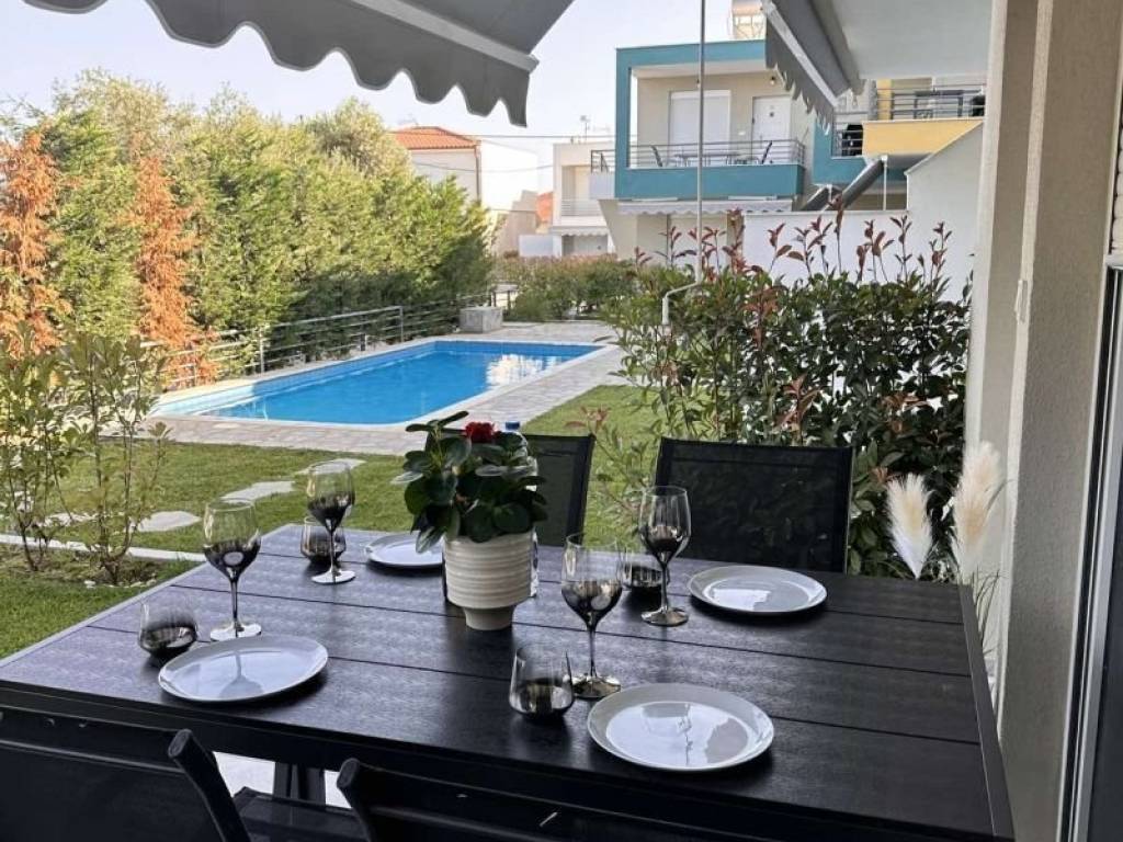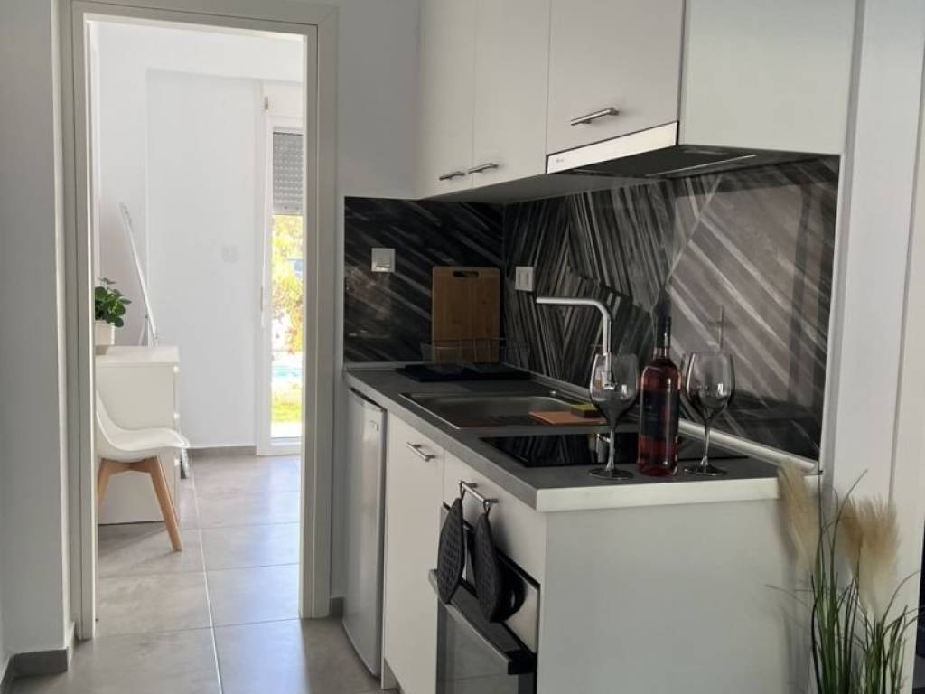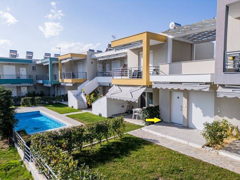 Ground floor apartment of 33.91 sq.m. in "DANAI" complex in Ofrinio Beach of Kavala. It consists of an open-plan space with kitchen, one bedroom, and bathroom. It has synthetic window frames with mosquito nets, tiled floors, two air conditioners, and a solar water heater. Outside, the complex has a communal swimming pool and is landscaped with lawns and ornamental plants. It is located just 430 meters away from the sandy beach of the area and is an excellent choice for both private use and investment.