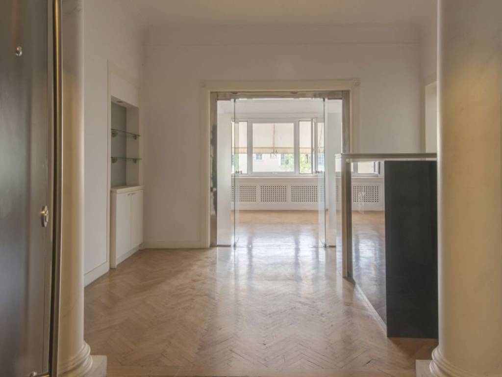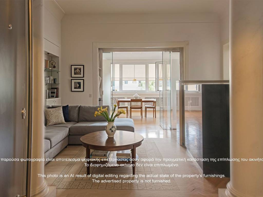 On the elevated first floor of an imposing interwar-period building lies this through-floor apartment of 235.45 sq.m. The space exudes the discreet luxury of classic Athenian aesthetics of the era, featuring high ceilings, oak floors, large openings, and abundant natural light. The front façade overlooks a public green space, while the rear side faces buildings of architectural interest. Its functional layout includes an entrance hall, living-dining area, kitchen, five bedrooms and a smaller service room, two bathrooms, two WCs, and two storage areas. The apartment can be utilized either as a luxurious high-standard residence or as an elegant professional space - a corporate headquarters or even a combination of both. With renovation and restoration, it has the potential to be transformed into a true “gem” in the heart of the city, a property that combines quality with timeless value. Neapoli is the area between Exarchia and Kolonaki. It has been measuring its autonomy since the 19th century. It is located between the hill of Strefi and Lycabettus, with the northern border of Alexandras and the southern border of Trilogy. Unique features: It was characterized as the district of the university students and their movements, the district of the rising bourgeoisie and the Athenian intellectuals, the district with the courtyards and the Athenian neoclassical houses. In addition to the Trilogy, the French Institute, the French School of Archeology, the Hellenic American Union and a number of publishing houses, bookstores and other organizations have been active here for many years. Accessibility: Served by many means of public transport and two metro stops. Investment opportunity: This area is located in the center of Athens, an area that has always been of great interest to buyers. Guaranteed return on investment.