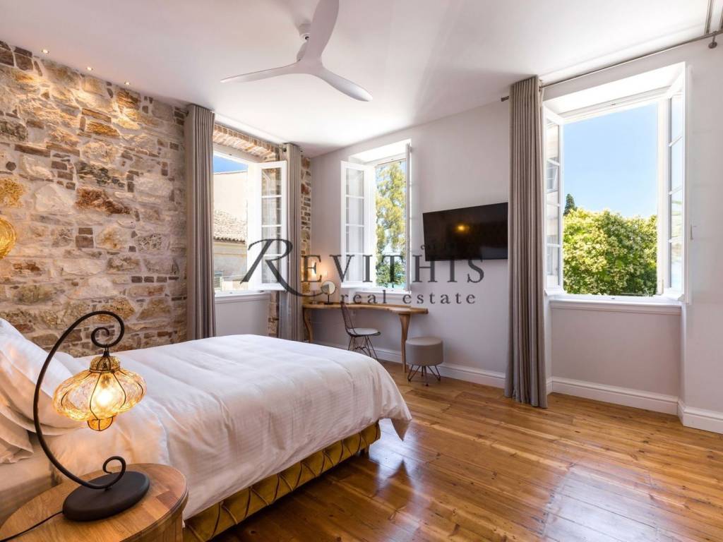 In the heart of Corfu Town, is a restored 18th century neoclassical villa blending heritage & modern comfort. The nine bedroom residence features elegant reception rooms, a private walled garden and views of Garitsa Bay. Moments from the Old Town & the sea, offers historic character, privacy and a rare sense of tranquility in the island's capital. The interiors combine high-end aesthetics, neoclassical elements, and warm Ionian tones, creating a space that is both luxurious and inviting. The private garden courtyard provides a tranquil oasis in the city, perfect for relaxation or social gatherings. Its location, quiet yet central, ensures easy access to local attractions, restaurants, cafés, and the sea. Amenities: Air conditioning, Balconies with sea views, Garden with seating areas and BBQ, Views of the sea and the historic center, Fully furnished and equipped. (There is a remaining building area of ​​120 sq m at the back of the garden.). Price: €2.950.000. Revithis Real Estate contact phone: 2108135181, 2108136111 email: info@revithis.com, athens@revithis.com