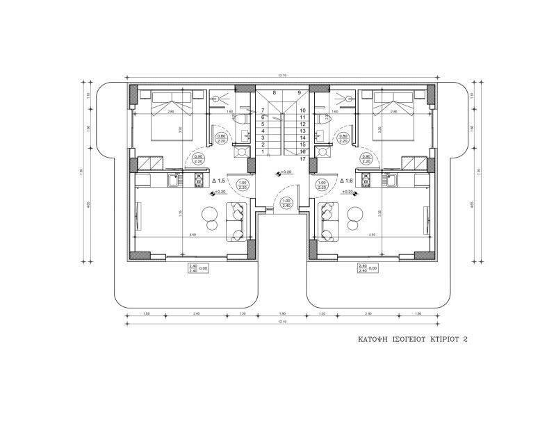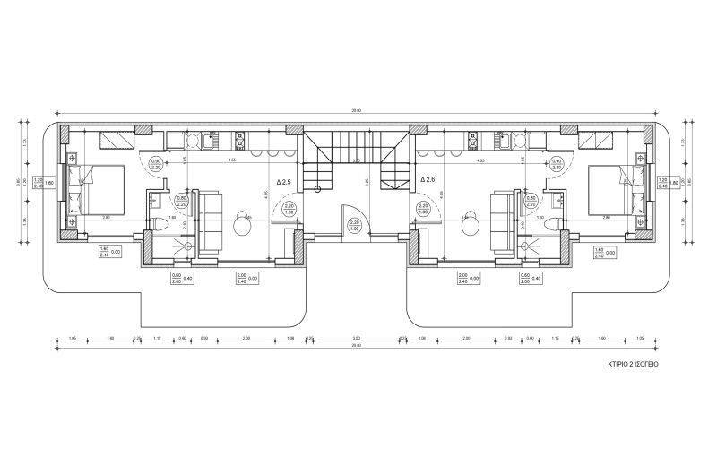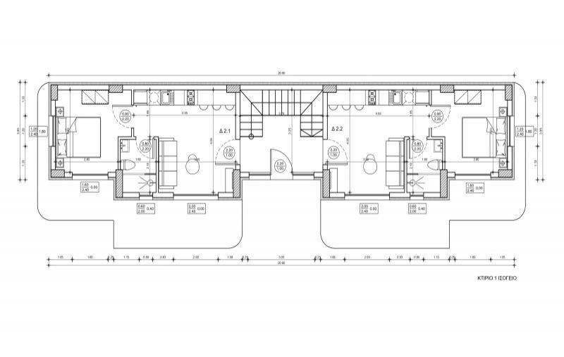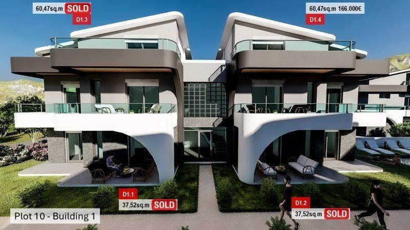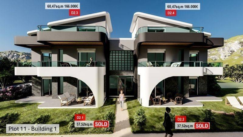 • 12 Ground floor apartments from 36,95sq.m to 37,52sq.m, consisting of a living room with kitchen, 1 bedroom, 1 bathroom.