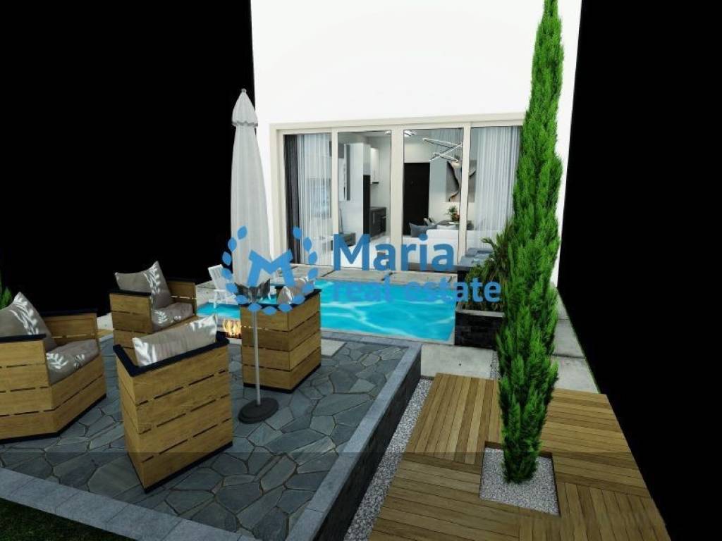 PROPERTY CODE 17649 For sale 12 maisonettes 55,16 sq.m. under construction on a plot of 2,250 sq.m. in Kassandria, Halkidiki. Each maisonette consists of a ground floor with a living room and kitchen and WC. An internal staircase leads to the first floor with 2 rooms and a bathroom. Each maisonette has 2 air conditioners and a private swimming pool. Distance from the sea 5 km.