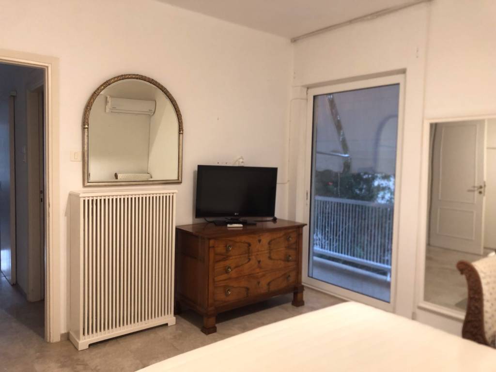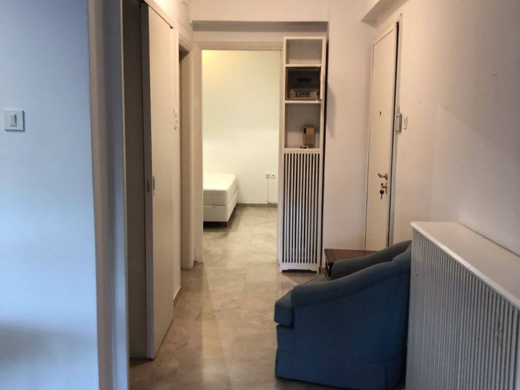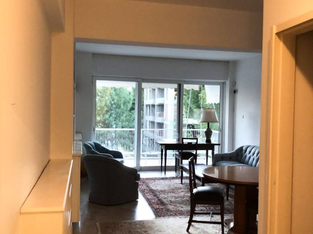 57 sq.m apartment available in the Voula area, next to a large park and 2 blocks from the ocean and Notos Cafe. As you walk into the unit, one enters into a hallway, and to the left is an open floor plan with a wall-to-wall sliding balcony door leading out to a balcony and expansive views of greenery, garden along with a partial view of the ocean. The floor plan includes the Living Room, Dining and Kitchen. Straight ahead upon entry is a fully equipped bathroom which includes a washing machine, and to the right upon entry is a good size bedroom with wall-to-wall closets. The entire apartment is surrounded by balconies and greenery. There's also an alarm system with camera's should someone be interested - currently not activated.