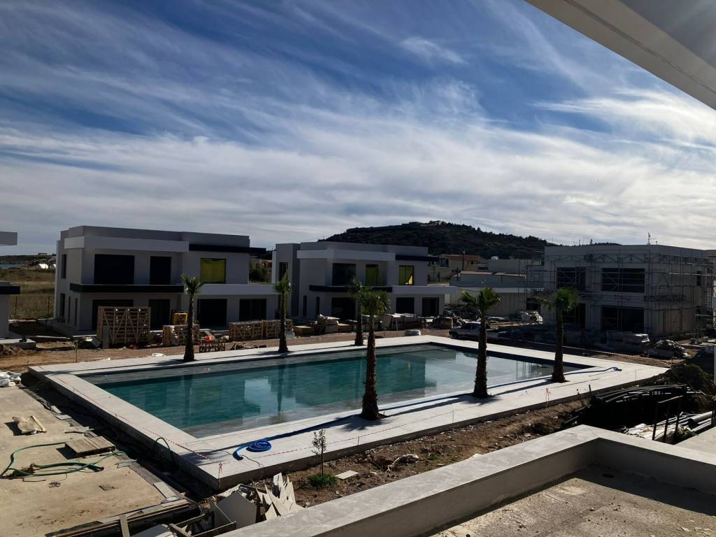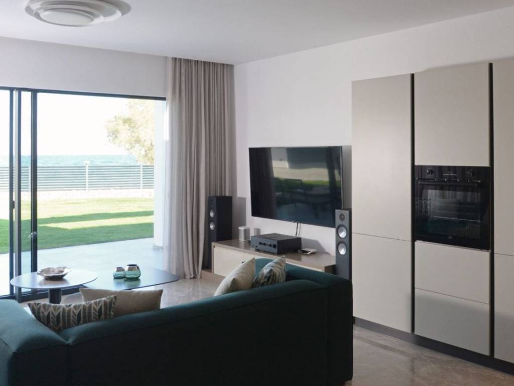 1st Floor Apartment in a Brand-New Seafront Complex Just 17 meters from the shoreline, with no road to cross. Step out into your private garden and you’re only 20 steps from the Aegean Sea. This exceptional development offers direct beach access, a large swimming pool, and beautiful landscaped gardens with mature trees — all with the shared-cost advantages of a modern complex. Spend days relaxing by the pool with your family, and enjoy evening barbecues with friends and neighbours. Smart Home Features Each property is equipped with advanced smart-home technology. Control and monitor your apartment from anywhere through a mobile app: lighting, heating, cooling, shutters, and more. Energy & Sustainability Solar Energy: Every home has its own photovoltaic panels that generate sufficient electricity for the property. Backup Systems: Continuous power is ensured with additional storage systems and a generator. Water Supply A full water purification system guarantees clean, reliable water at all times — an important feature on an island with high water demand. Comfort Features Underfloor Heating (REHAU): Efficient, even heating with individual room temperature control. Air Conditioning (Daikin): High-efficiency climate control for year-round comfort. Schüco Windows: Premium window systems with low heat transfer and electric shutters. Views & Atmosphere Large windows provide unobstructed sea views. Fall asleep to the sound of the waves and wake up to the beauty of the Aegean Sea. APARTMENT 2D 2 Bedrooms 2 Bathrooms Internal Area: 92.5 sqm Balconies: 29 sqm Estimated Delivery: 1st Quarter 2026