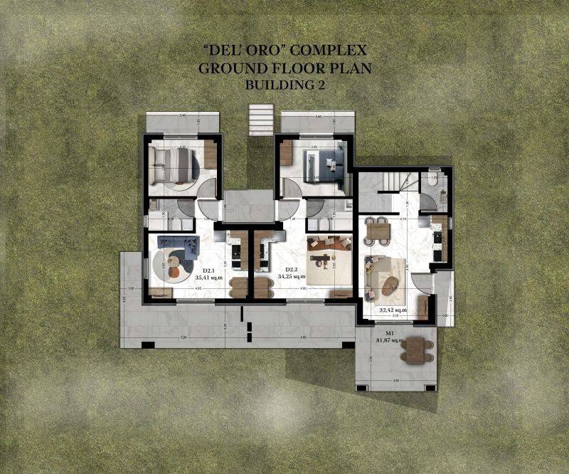 The 2 modern buildings of the complex stand out for their minimalist aesthetics and natural harmony with the landscape, creating an impressive yet serene image. With a total of 13 carefully designed residences, Del Oro emphasizes brightness, functionality, and comfort.