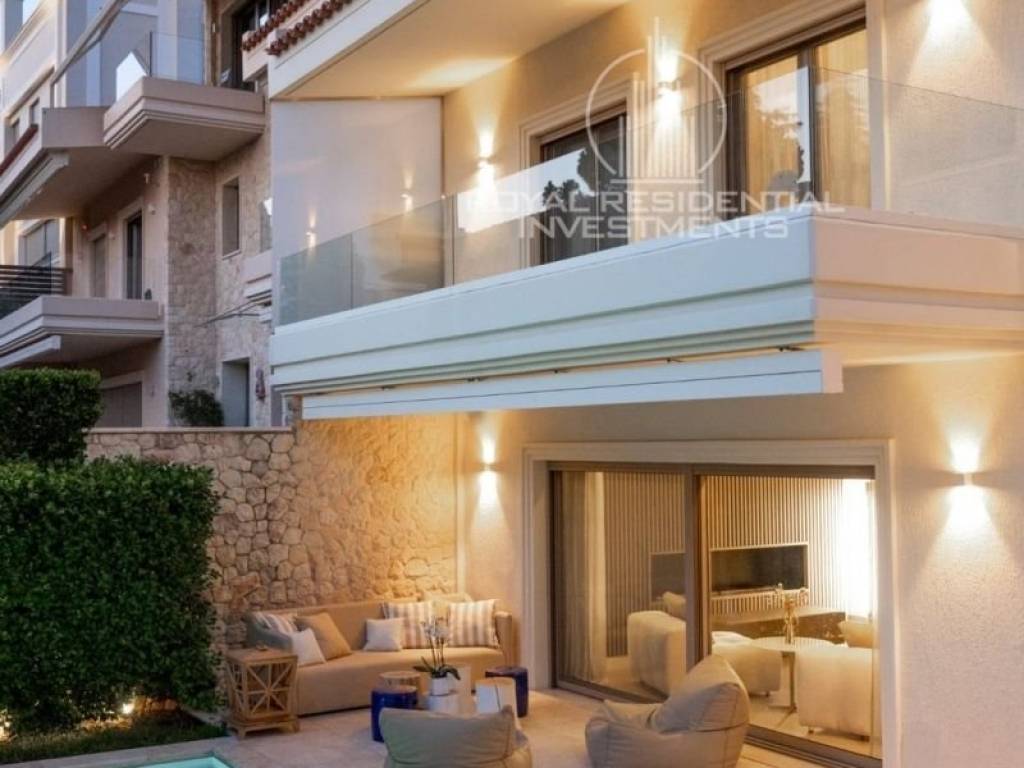 Property Code: 1-16600 - Maisonette FOR SALE in Voula Pigadakia for € 2.000.000 . This 400.00 sq. m. furnished Maisonette consists of 3 levels and features 3 Bedrooms, Livingroom, 2 Kitchens, 5 bathrooms and a WC. The property also boasts Heating system: Autonomous heating - Oil, wooden floor, Window frames: Aluminium, Armourplated door, accessibility for people with disabilities, a storage unit sqm, garden, fireplace, swimming pool, A/C, alarm system, insect screens, double-glazed windows, playroom, internal staircase, balconies: 100 sqm. The building was constructed in 2019 Plot area: 500 s.q. . Building Energy Rating: A Distance from sea 880 meters,