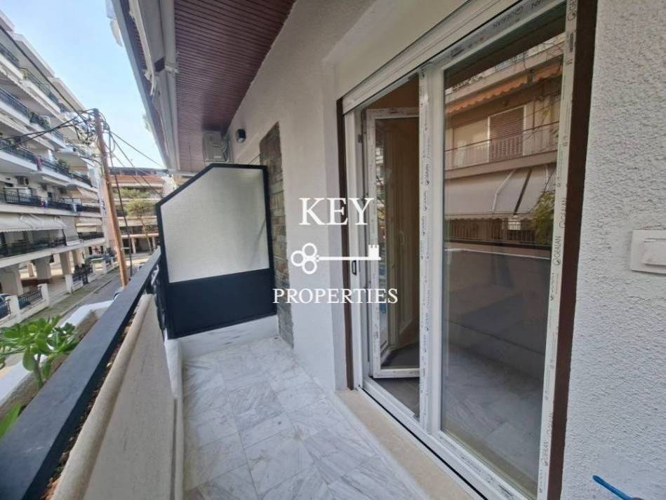 Luxuriously renovated studio apartment of 43sq.m., for sale on the 1st floor with elevator. It consists of a spacious bedroom, a bright open plan kitchen with living room and a bathroom. It is fully furnished, has electrical appliances, air conditioning, large balcony, double glazing with screens, armored door and individual natural gas heating. It is situated in a unique location in the city, next to bus stops, schools and the market.