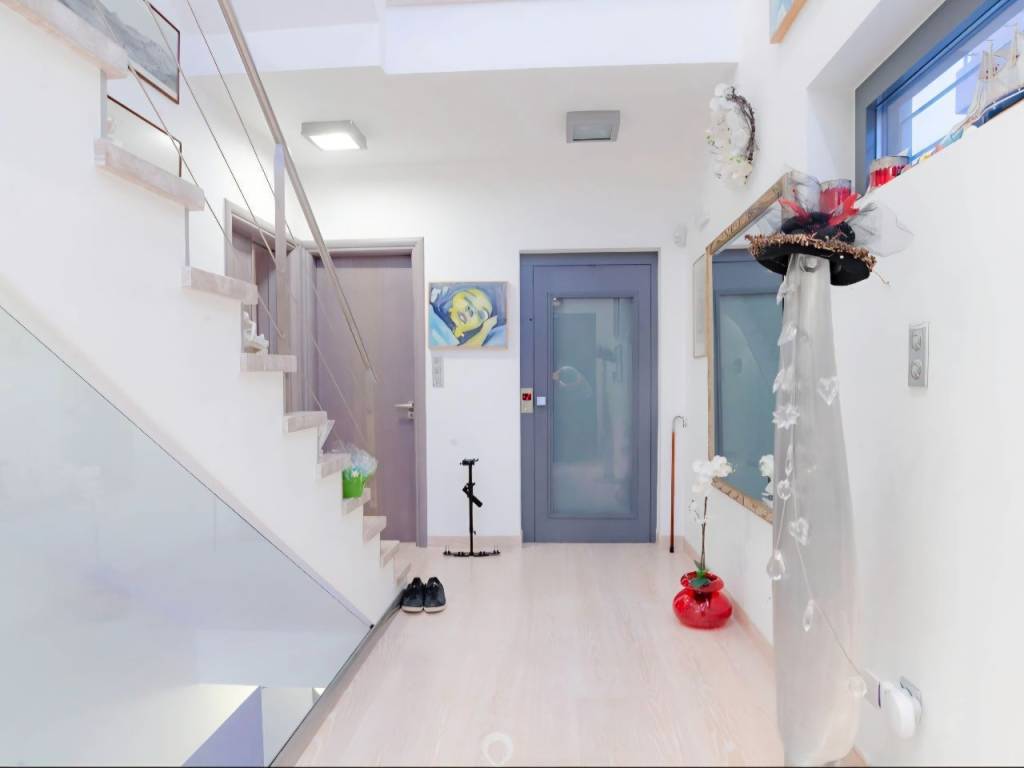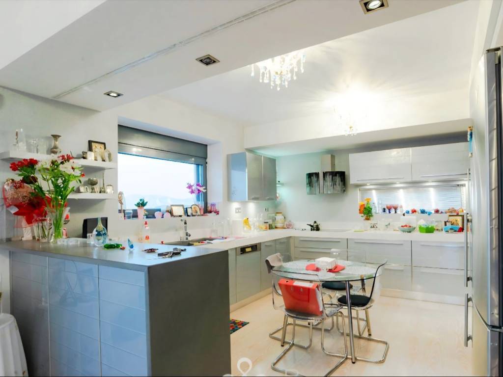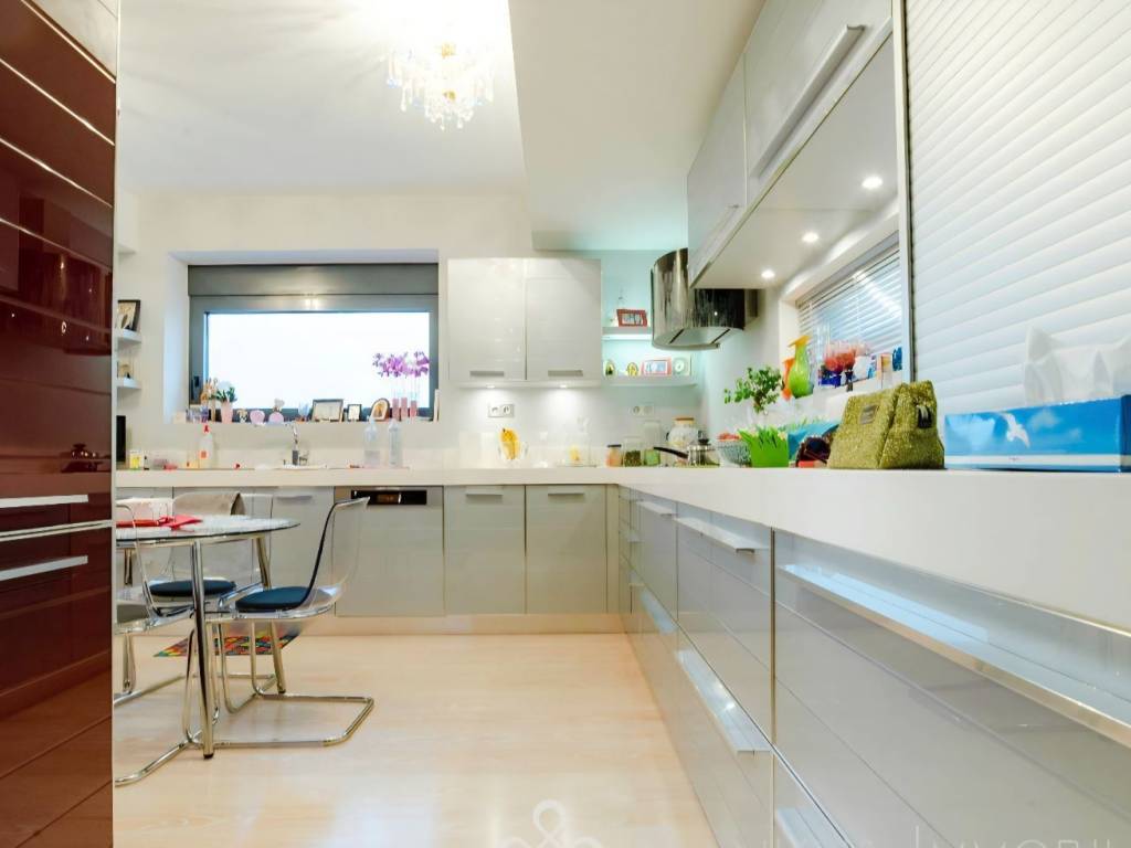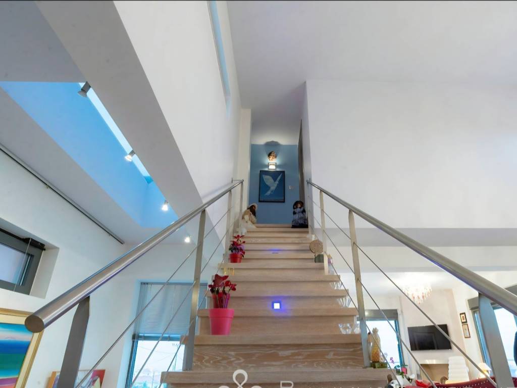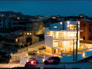 CHRYSIKOS REAL ESTATE Unique, luxurious property for sale, at Neos Voutzas, Attica, Athens, Greece Luxury, "green", in modern architectural design multilevel residence, with panoramic and incomparable view over Evoikos Bay and across the entire Attica basin, is for sale. It is built in 2011, at the edge of a hill, adjacent to a public triangular garden-land, in a two - street faced terrain of 600 m2 and has a living capacity of 489 m2. It is colored in white, with gray doors, rolls and window frames. Balconies’ baluster by stainless steel. The residence is situated in the settlement of Neos Voutzas, neighboring with the cities of Marathon and Rafina, at the east cost of Attica. The nearest sea side is a few km away, while the Athens International airport, been viewed by the house, lies less than 20 minutes of driving. Main Features: ♦ The residence possesses a license for pool, which has not been built. In place, a layer of a hard resistant wooden deck has been installed, covering in style, a portion of the front yard. ♦ The climatization is provided by a Hydro electrical heat-cool pump. It is equipped with a latest technology sophisticated alarm system, by Tecnoalarm. ♦ The security doors are manufactured by Siamo. ♦ The elevator is 7 persons’ Kleeman, with 4 stops. The house is erected in 5 levels: On the ground floor, there are: ♦ The main entrance ♦ The reception hall, with a ceiling height of 5.5 m, supervised by a skylight with extra security glass by “COSPICO” on the roof. ♦ The visitors wardrobe ♦ The staircase ♦ The master bedroom with 5 meters of closets and two bathrooms, one with Jacuzzi. A walking-through room to the bathrooms with 10 meters of wardrobe closets. ♦ Second bedroom with bathroom-shower hydro massage. ♦ Balconies and windows in the perimeter. On the first floor, there are: ♦ The dominant, 150 sq meters open plan lounge - living room with fireplace and dining area and a pass from “Serena” marble. ♦ A modern, luxurious cuisine of crystal, by the Italian House Zacarioti with ten meters countertop from rock crystal - quartz. ♦ The kitchen is equipped with custom fitted Miele appliances (dishwasher, induction hob 90 cm, and an exquisite coffee maker), Gaggenau (oven and oven steam) whilst the state of the art oven hood-fixture is by Falmec. ♦ A small spaced storage room. ♦ An elegant guest WC. ♦ The lighting chandeliers are from Swarovski crystals by KOSTIS Inc. ♦ Long-wide balconies in the perimeter. Loft (fifth level): ♦ Above the first floor there is the roomy loft with the superb view. It has a large balcony, custom fitted library of plasterboard and a kitchenette with a small fridge. ♦ All the above described sites are equipped with floors made from genuine outstanding style 2 cm thick oak wood, solidly welded. The stair steps of the residence are also covered by the same material. On the 1st level basement, there are: ♦ Due to the mild downhill landscape, this level is facing the ground on the east side. It has exit to the wooden deck yard by safety glass sliding doors, a window and a single door. It features a large living room with fireplace, contiguous kitchen with built-in AEG home appliances, and bathroom with hydro massage shower. ♦ Also, one bedroom (guest house or service room), with a full bathroom, kitchen and a separate security entrance, internally, and on the outside. ♦ The floor of this level is covered by gray granite 60x60 tiles. On the 2nd Level basement (underground) there are: ♦ The car entrance to the underground basement is by a shallowly sliding ramp. Flooring from industrial concrete, is 150 sq m of space, with three+ parking spots, laundry room and 2 more utility rooms for any use. ♦ It is equipped with 2 automatic garage doors, by Xofakis, one safe internal; and one outdoors, at the entrance of the ramp. ♦ The elevator mechanism room, the hot water boiler, the heating automations equipment as well as the electric general switch boards - electronics controls are located there. The roof of the building is from concrete. A large portion of it is covered by tiles. The rest is flat bed, in which the heat pump is installed. This electrical pump, installed by Ergon, provides the residence with heat and/or cool, via under-floor installation of coil tubes. Apart from the healthy green energy this causes savings of around 60–70% in heating-cooling costs compared to other sources. The balconies’ doors, windows the safety metal rolls and their frames are made by SHUCCO installed by Ergon, with special energy, double and/or bulletproof glasses where it is required. The property’s State building permission is of the year 2009. Construction completed by 2011. Contact numbers: 2421409131, 6906893512