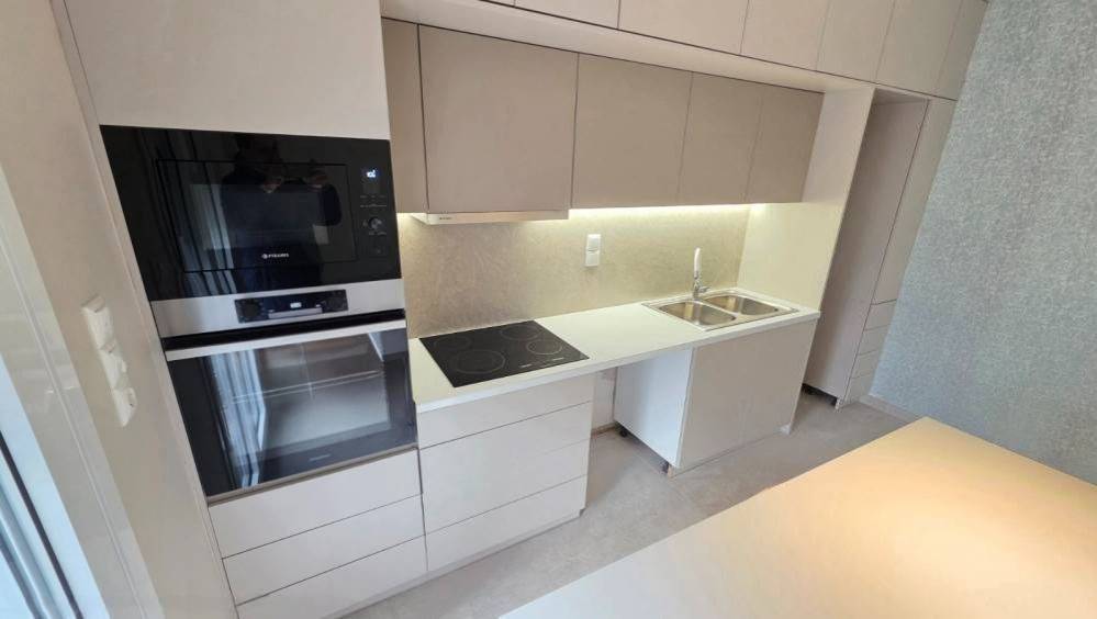 This property comes unfurnished including electronic devices (built in oven, φούρνος μικροκυμάτων) with ceramic tiles flooring.