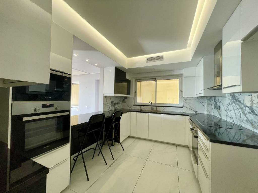 Engel & Voelkers is delighted to present a stunning apartment located in the picturesque beachfront of Glyfada, where luxury meets elegance in a harmonious blend. This beautifully modernized residence spans an impressive 150 square meters, offering a seamless fusion of space and style. With 3 spacious bedrooms and 3 exquisite bathrooms, including a lavish master bath, this apartment is a sanctuary of comfort and sophistication. Step inside to discover a world of refined luxury. The apartment's design boasts an open and airy layout, complemented by the warmth of wooden laminate flooring. Each room is thoughtfully crafted to maximize both natural light and the breathtaking beach-front views, creating an ambiance of tranquility and grandeur. The built-in cupboards, state-of-the-art kitchen, and guest toilet add to the convenience and elegance of this remarkable home. Special features elevate this property to unparalleled heights. The inviting fireplace offers a cozy retreat, while the southwest-facing balcony provides an idyllic setting to enjoy the mesmerizing sea views. Equipped with modern comforts, the apartment features advanced heating through heat pump and fan coils as well as solar water heater, ensuring year-round comfort. Safety is paramount with an integrated alarm system, electronic gate, and a triple-lock safety door. Experience the epitome of luxurious coastal living in this exceptional Glyfada apartment. With its recent modernization, exquisite design, and stunning location, this property is a rare opportunity to own a slice of paradise. Embrace the elegance and allure of this magnificent home and make it yours today. Located in the heart of Glyfada, an elite suburb of Athens, this property is ideal for discerning individuals seeking a blend of urban sophistication and seaside tranquility. Glyfada is renowned for its upscale shopping districts, vibrant nightlife, and picturesque beaches, making it a perfect haven for affluent potential tenants who appreciate luxury and leisure in equal measure. The area boasts exceptional infrastructure, including a modern tram system offering a scenic 30-minute ride to Athens' historic center, ensuring seamless connectivity to cultural landmarks and business hubs. Leisure activities abound, with pristine golf course, exclusive beach clubs, and gourmet dining options just minutes away. Special features of Glyfada include its stunning coastal views and a marina that caters to yachting enthusiasts. This location epitomizes the essence of luxury living, combining the serenity of the Athenian Riviera with the dynamic energy of the city, offering a truly unparalleled lifestyle for those who demand the very best.