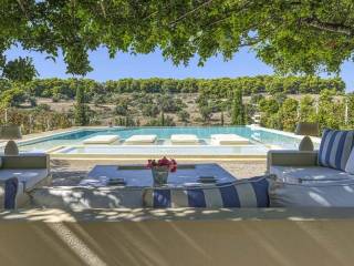 A magnificent example of a Tuscan-style estate, consisting of 4 independent villas on a plot of 18,000 sq.m, just a few minutes away from the port of Porto Heli. Enjoy the luxury living in the estate, with ample space to unwind, entertain, and enjoy the serene surroundings with multiple indoor and outdoor living areas. Villa Layout: Villa Basilico: 100 sq.m, open plan kitchen and dining, 2 bedrooms, 3 bathrooms, and a private pool. Villa Oliveto: 150 sq.m, open plan kitchen and dining, 3 bedrooms, 3 bathrooms, private pool. Villa Origano: 120 sq.m, open plan kitchen and dining, 3 bedrooms, 4 bathrooms, private pool. Villa Rosemary: 70 sq.m, open plan kitchen and dining, 2 bedrooms, 2 bathrooms. All villas are set among the vineyards ensuring privacy and tranquility. The open plan living and dining areas open to the wonderful manicured gardens and their pools, enjoying panoramic views of the mountainous landscapes, while the indoor areas offer high-quality decoration with Mediterranean-style furnishings. Common Amenities: • Large Pool and bar area • Open-air cinema • Garden area • Barbecue area • Playground • Wine processing area A gorgeous estate in a premium neighborhood, suitable for those seeking an elegant lifestyle in a natural environment. Location: Porto Heli is located on the east coast of the Peloponnese mainland, 6 km south of Kranidi and 40 km southeast of Nafplio. Unique Features: Porto Heli is a natural small port and along with Ermioni, which is nearby, is one of the most cosmopolitan destinations in Peloponnese. Porto Heli has largely developed its tourist infrastructure and is characterized by the abundance of luxury properties and high quality villas. In the marina of the area you can enjoy wonderful walks along the streets with shops, restaurants, hotels. The hotel facilities offer a plethora of activities from water sports, diving to hiking. Marinas for sailing, views of beautiful Spetses just a breath away, fresh fish and interesting nightlife. Accessibility: Porto Heli is just two hours drive from Athens and only 85 km from Nafplio. The area is connected by ferry to Spetses, Hydra, Poros, Ermioni and Piraeus. Investment Opportunity: Porto Heli, also known as the "Greek Riviera", has managed to establish itself as the number one holiday home destination for wealthy Greeks and foreigners, offering huge opportunities for investors.