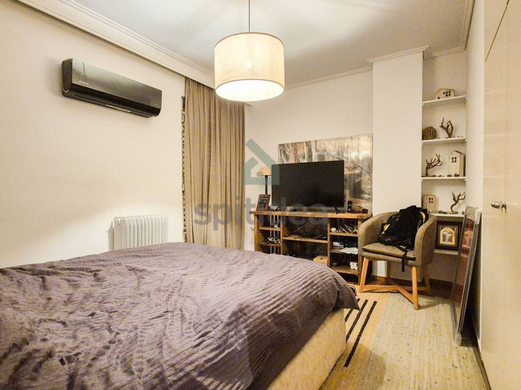 This is a 110sqm apartment on the 1st floor of an apartment building built in 1987, renovated in 2023. It consists of a hall, living room, semi-independent kitchen (equipped with built-in electrical appliances) with sink, 2 bedrooms, bathroom, WC and an internal storage room of approximately 4sqm. It has a security door, alarm, video intercom, autonomous oil heating, solar water heater, aluminum frames with double glazing and 3 air conditioners. The apartment also includes 1 underground parking space and a 10sqm storage room. It is located in a very good location, near Agia Paraskevi Square and a 10-minute walk from Agia Paraskevi and Chalandri metro stations.