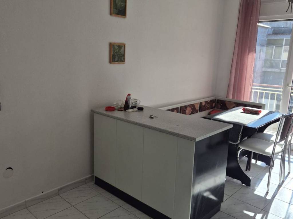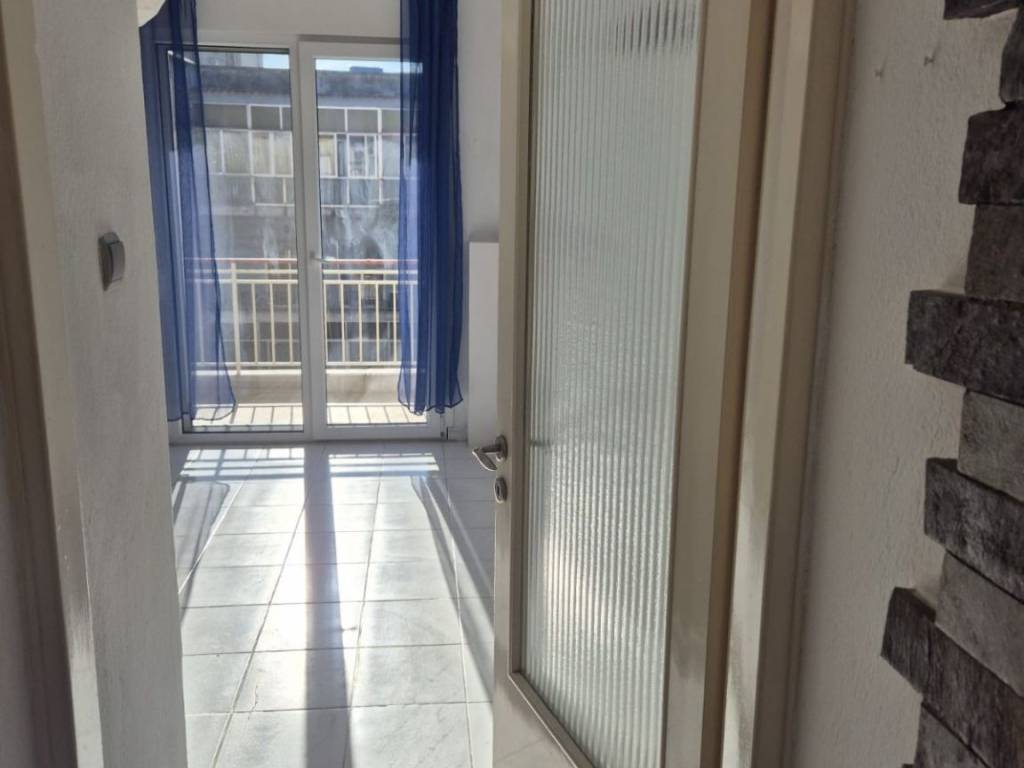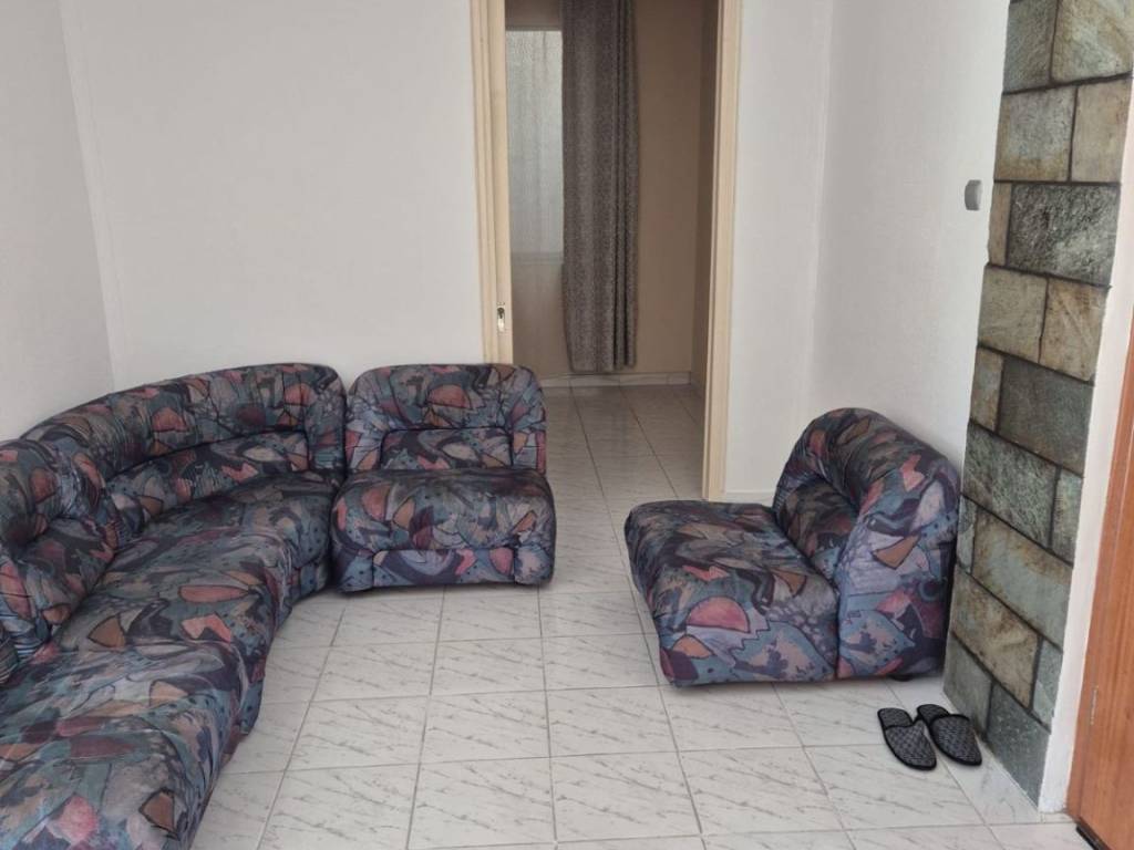 Διαμέρισμα 70 τ.μ., 5ος όροφος, στο κέντρο της πόλης. Ενιαίος χώρος σαλονιού–κουζίνας, τραπεζαρία και μπαλκόνι. Διαθέτει ψυγείο και πλυντήριο, καθώς και βασική επίπλωση (καναπές, τραπεζαρία, καρέκλες, ντουλάπα). Διατίθεται χωρίς κρεβάτι.
