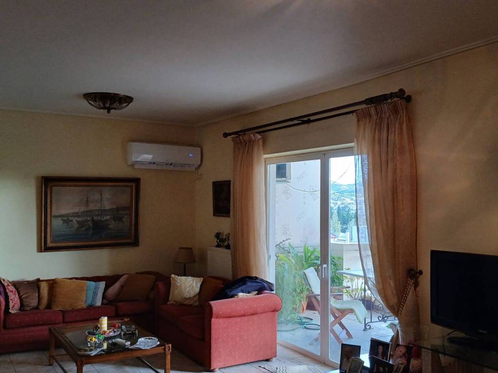 Το διαμέρισμα ενοικιάζεται πλήρως επιπλωμένο με εντοιχισμένες ηλεκτρικές συσκευές. Είναι ρετιρέ και βρίσκεται στον τρίτο όροφο τριώροφης πολυκατοικίας με ασανσέρ. Διαθέτει δύο υπνοδωμάτια με αντίστοιχα μπαλκόνια με απεριόριστη θέα και τέντες, ένα κεντρικό μπάνιο και ένα wc. Έχει αυτόνομη κεντρική θέρμανση, ηλιακό θερμοσίφωνα, οθόνη θυροτηλεόρασης και κλιματιστικά στα υπνοδωμάτια και το σαλόνι. Το διαμέρισμα διαθέτει επίσης αποθήκη 10 τετρ. μέτρα και πάρκινγκ πιλοτής.