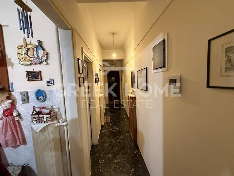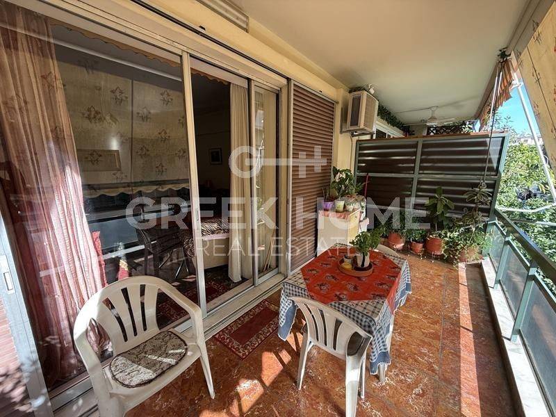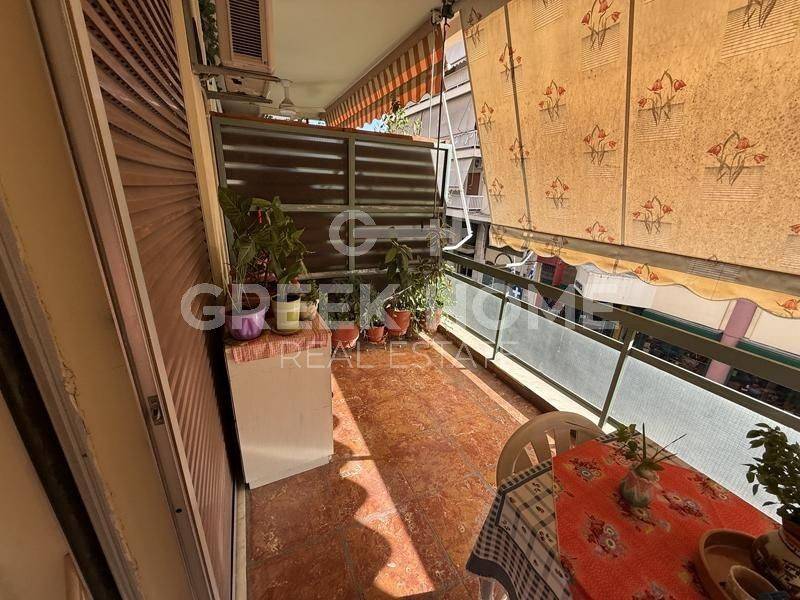 Kallithea (Attica - Southern Suburbs), Centre - Apartment 110sqm unfurnished, bedrooms 2, 1st, good condition, year built 1975, renovation year 2007, energy class E, living room, hall, kitchen, bathroom, wc, heating type: central (oil), air condition, quiet, dual aspect apartment, luminous, frontage, painted, storage space 4sqm, balconies, large balconies, tents, elevator, loft storage, wooden frames, wood & marble floors, video doorbell, pets allowed, investment property, special offer, commercial use, close to market (up to 100m).